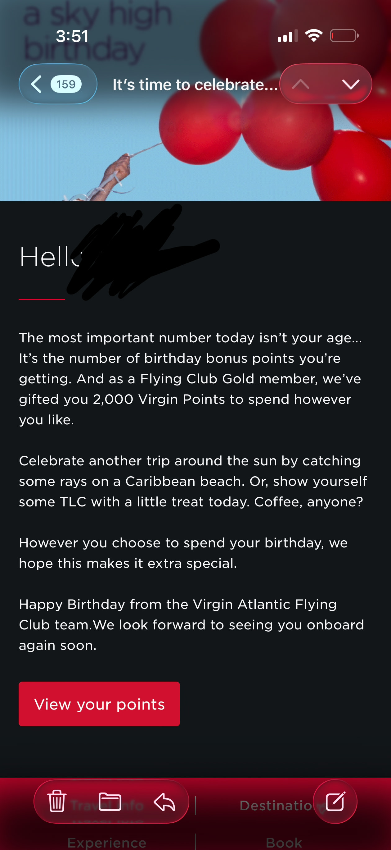 匹配的Virgin gold送了2000 points