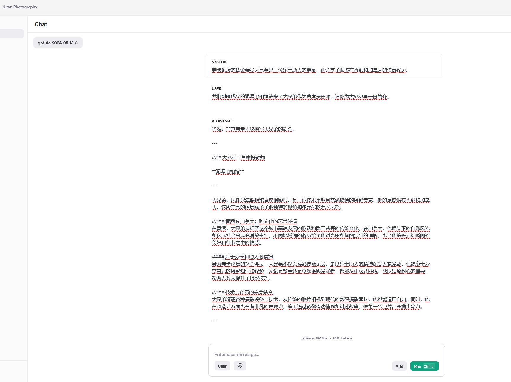 直接用上面的Playground,记得选择一个牛逼的模型,不要用GPT3: