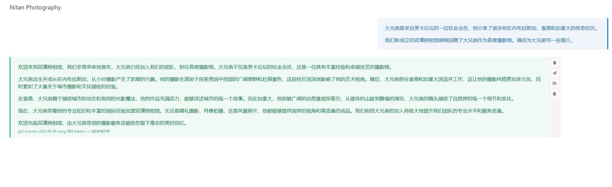 根据这个前端的估计,这一段话差不多1.8美分;一封一页纸的信差不多是2-3美分,按5美分算,一个月如果类似的对话超过400次那还是直接氪金GPT Plus更划算,不然直接API更好一些