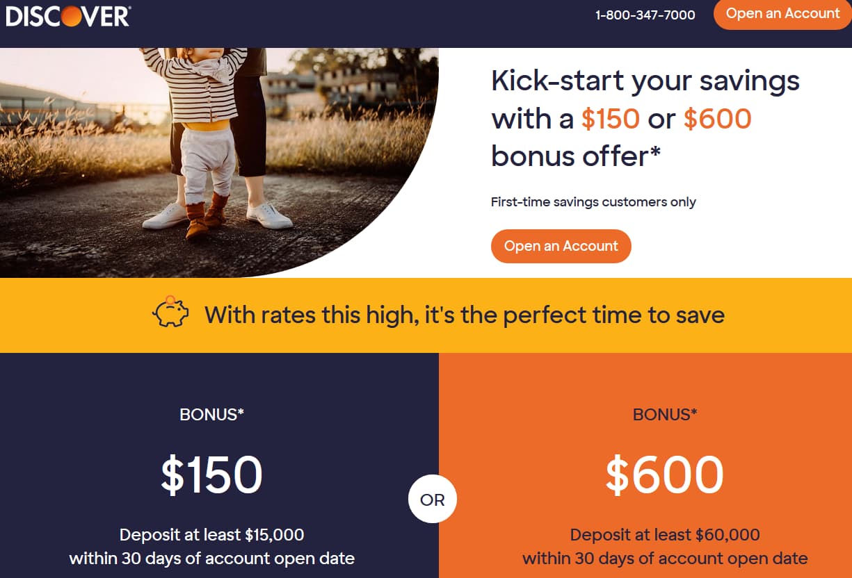 刚刚收到discover targeted email,new saving account,存$15,000 bonus $150, $45,000 bonus $400, code: BONUS524E1,不知道public能不能用上这个