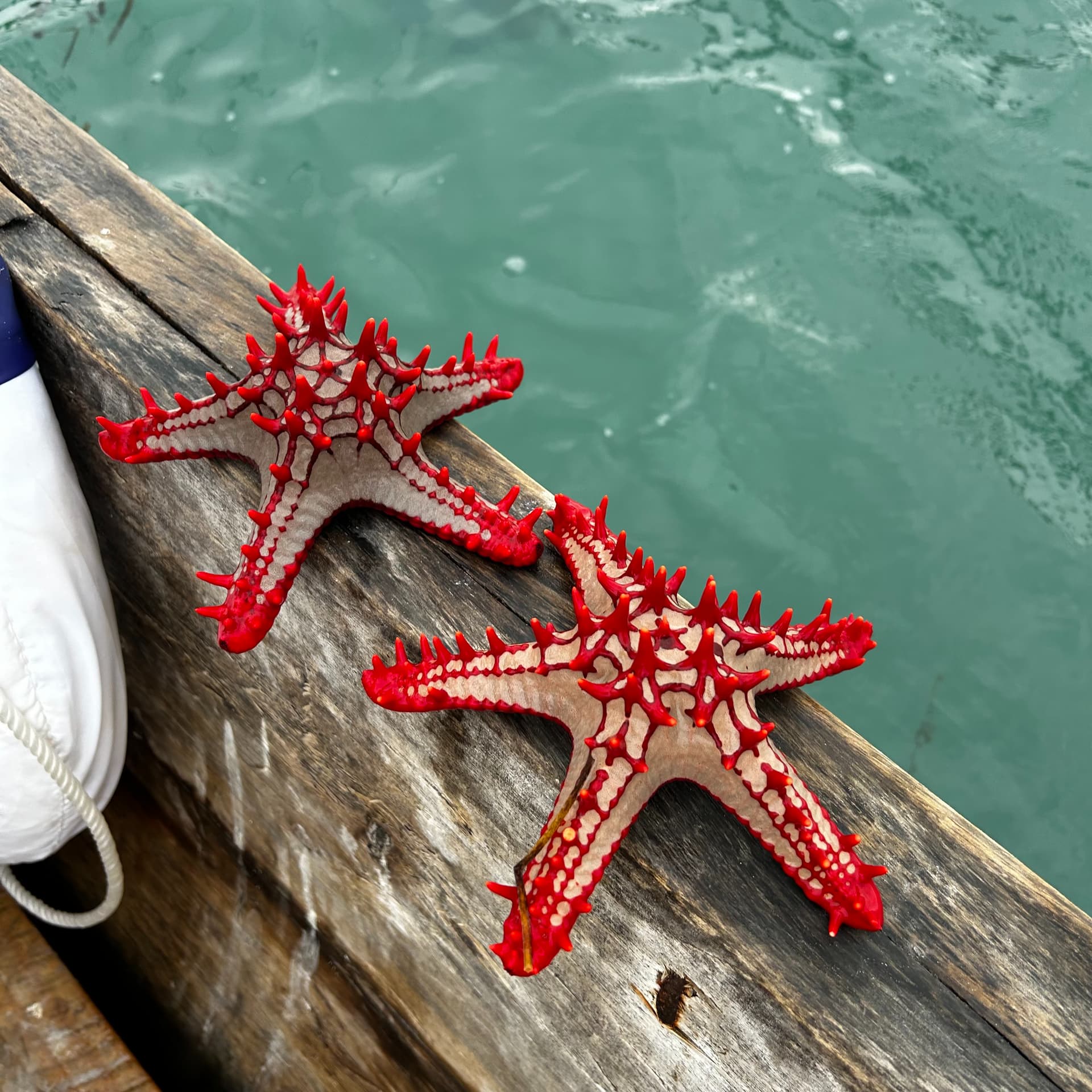 我们在小红书上认识了在桑给巴尔工作的杨哥,热爱户外运动的他外派桑给巴尔之后学会了自由潜,然后开展了陪同中国游客追海豚+抓海星+拍照的副业。他带着我们玩了一天,出海追了海豚(90%的概率能追到,然而我们那天天降暴雨沦为10%),在巨浪里浮潜(珊瑚还是很不错的)以及坐当地人的帆船出海抓海星。杨哥人非常nice,一路上分享了很多在桑给巴尔生活的趣事,中午吃饭的时候还跟我们找了个当地resort一起打乒乓球