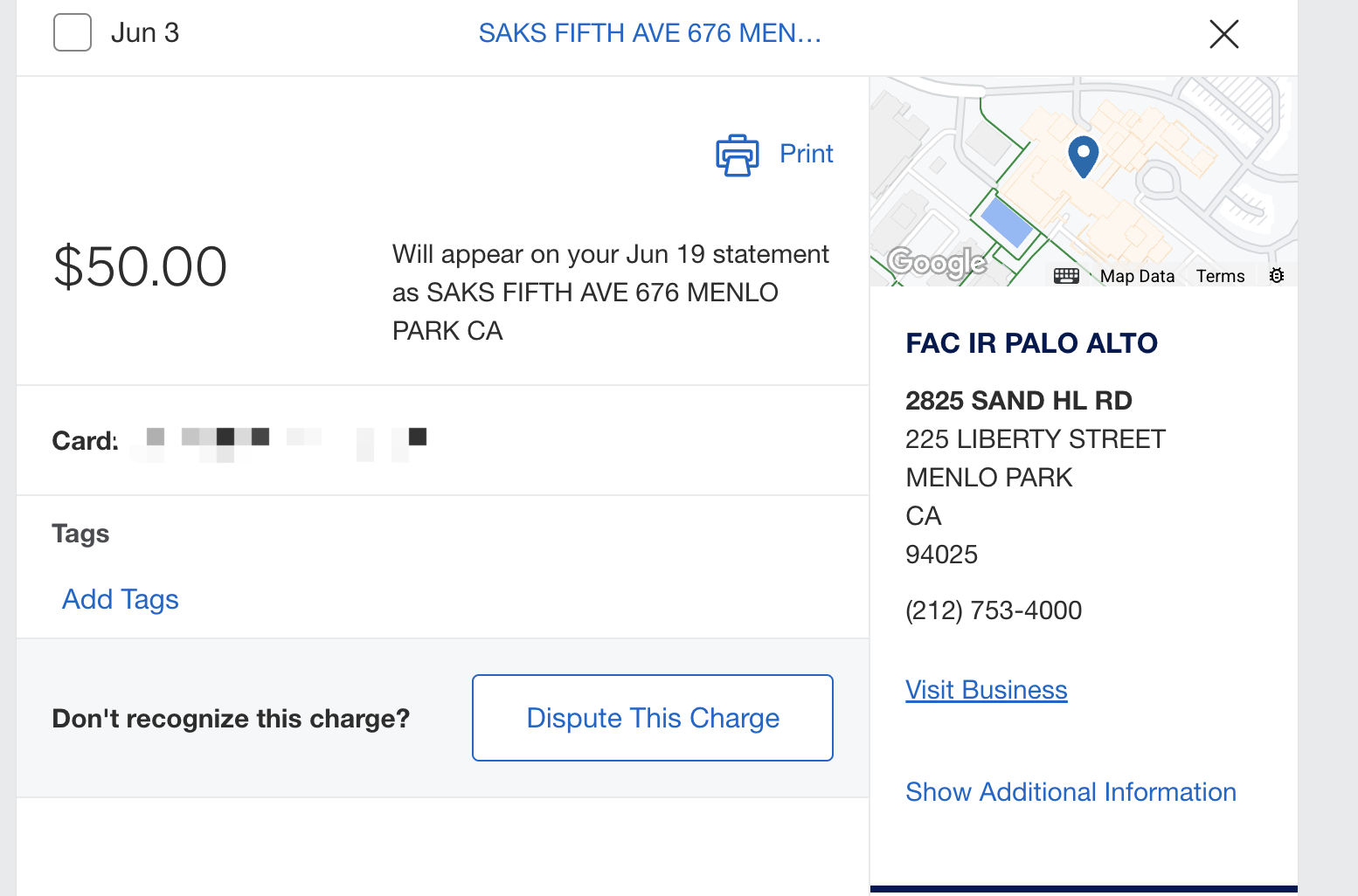 前两周路过menlo park顺便去了,pending的时候没有显示是saks,当时内心还慌了一下。