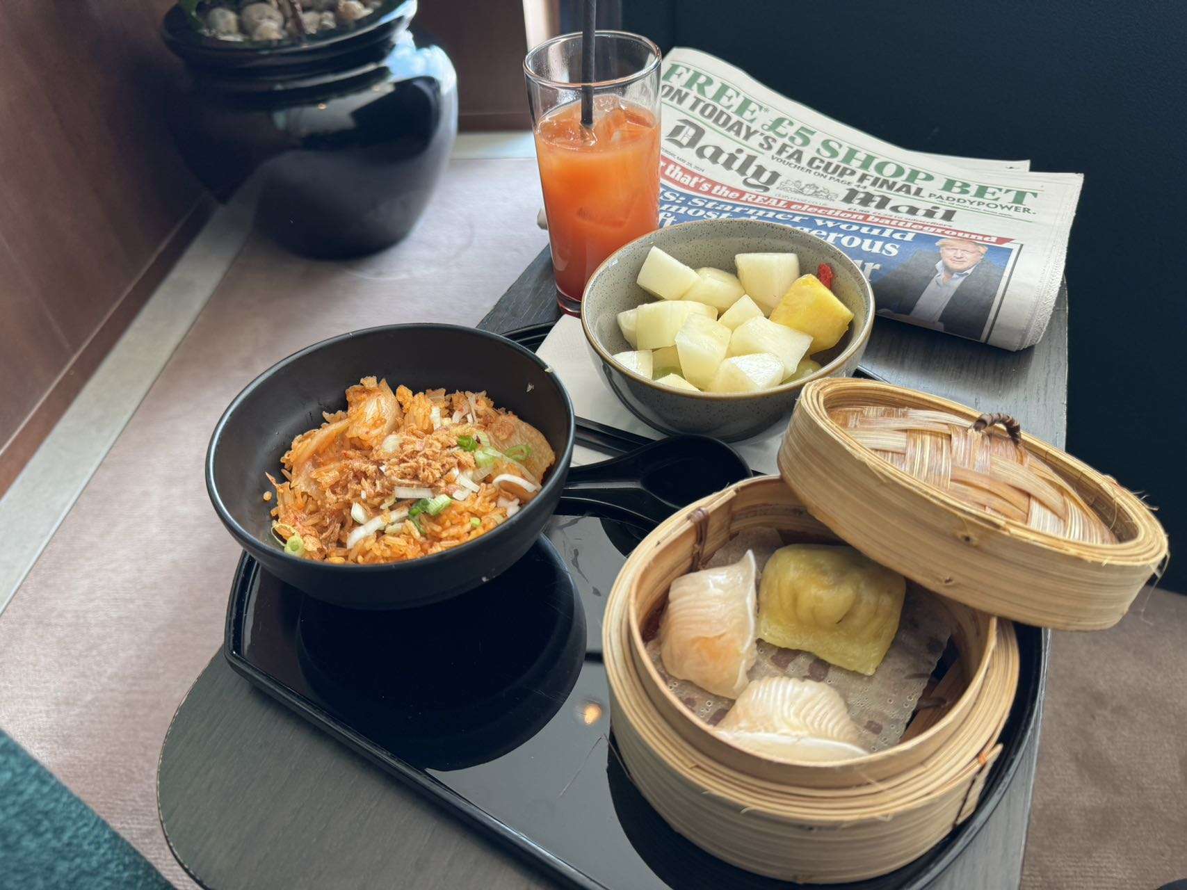 在CX的休息室吃了一笼点心和炒饭,味道不错。