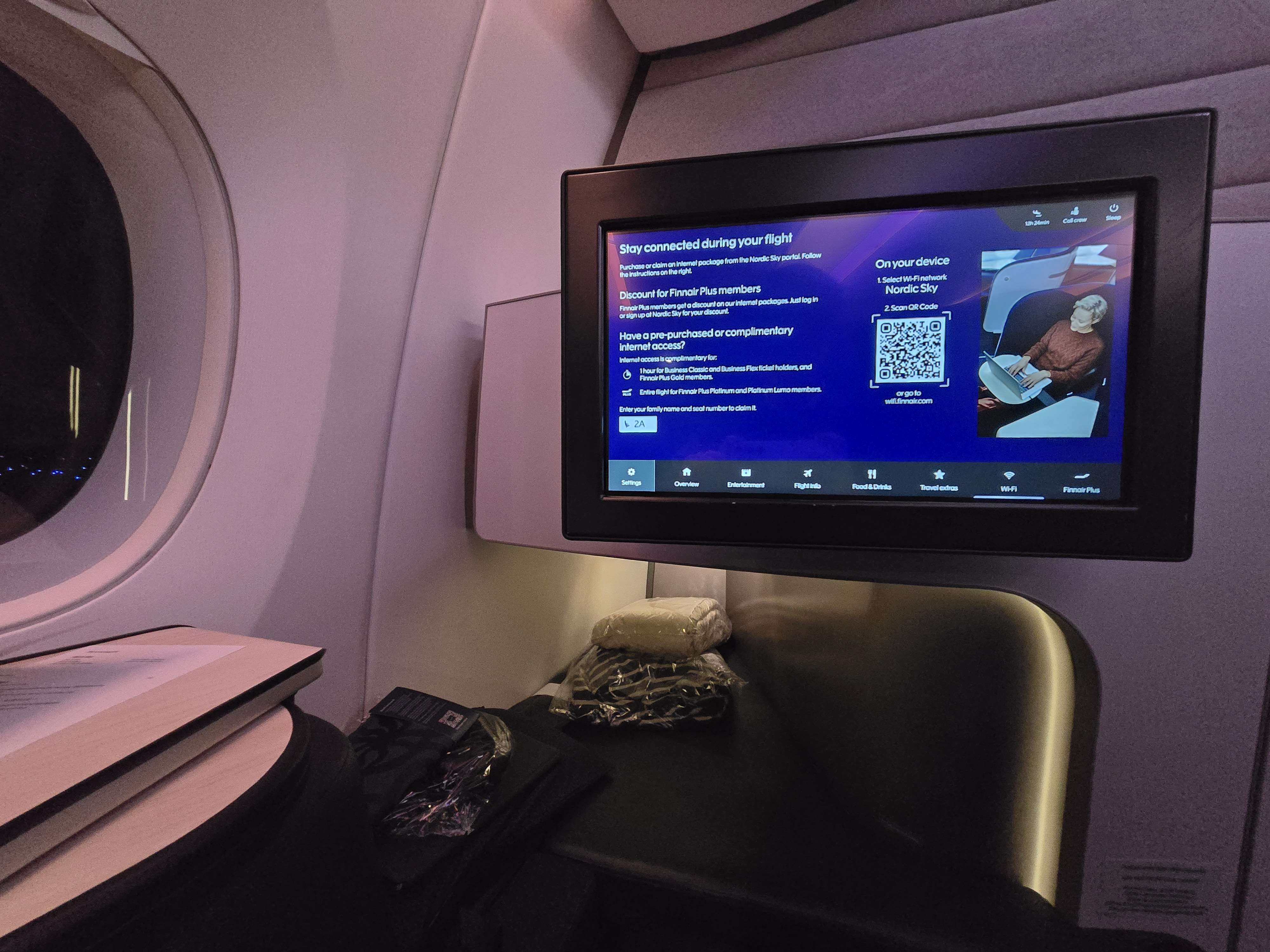 从2022年起AY开始全面翻新其拥有的A350和A330机队,并引入了新的座位设计。尤其是Business Class,和传统的布局不同,新的座位设计将是not reclinable的,旅客需要向前“滑”入前方的空间里平躺。这是个新颖的设计,而在2024年的今日芬航执飞的HEL-PVG航线上已经终于全面翻新,因此也得以有机会体验一次。