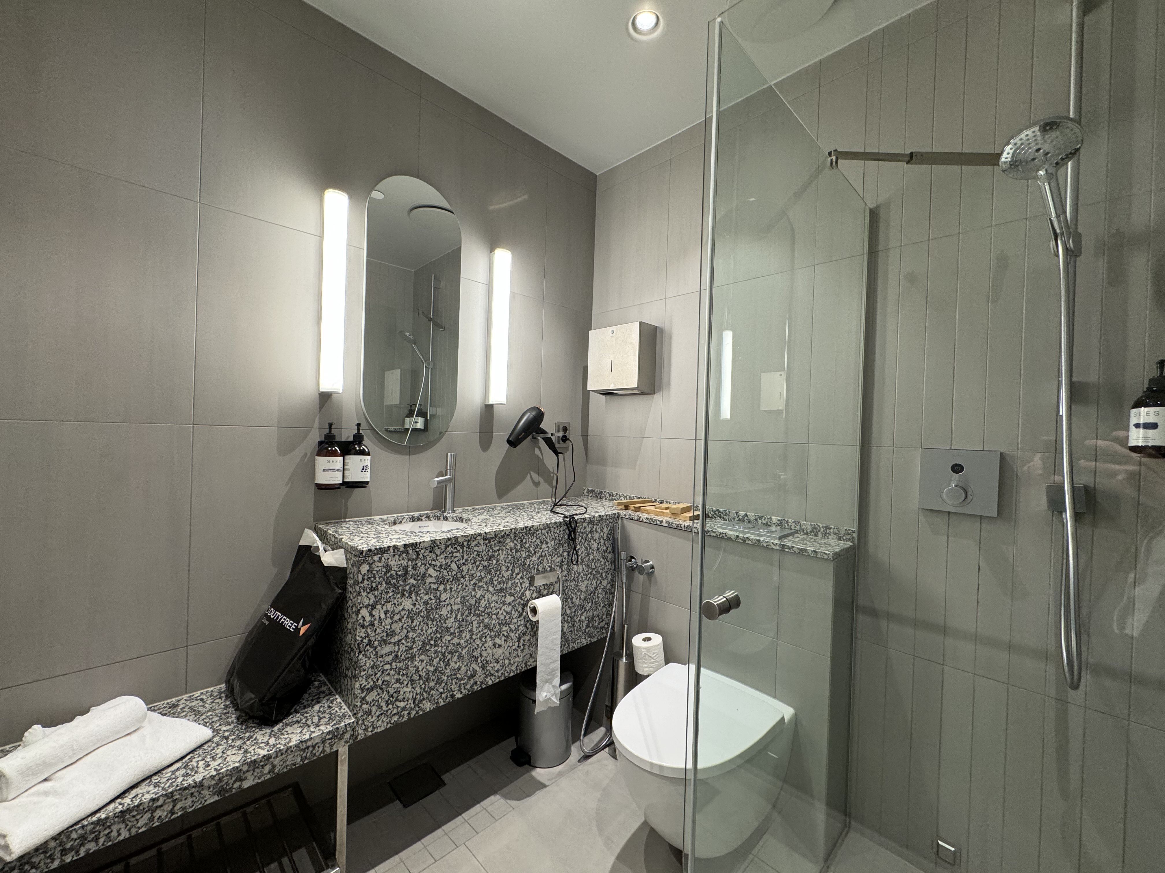 夸赞一下休息室的shower room!这里对社恐友好到什么地步呢——shower不需要在前台预约,不需要拿钥匙,甚至见不到保洁的阿姨。每个房间门口都有一个自动化的panel,只需要在门口自助预约,系统会分配半小时的洗浴时间,直接推门进去就可以开始使用了。等洗漱完之后会有工作人员来打扫,然后清洁完之后把系统reset到可用状态,如此循环,感觉效率还满高的。(绿灯代表可用,红灯代表使用中/清洁中)