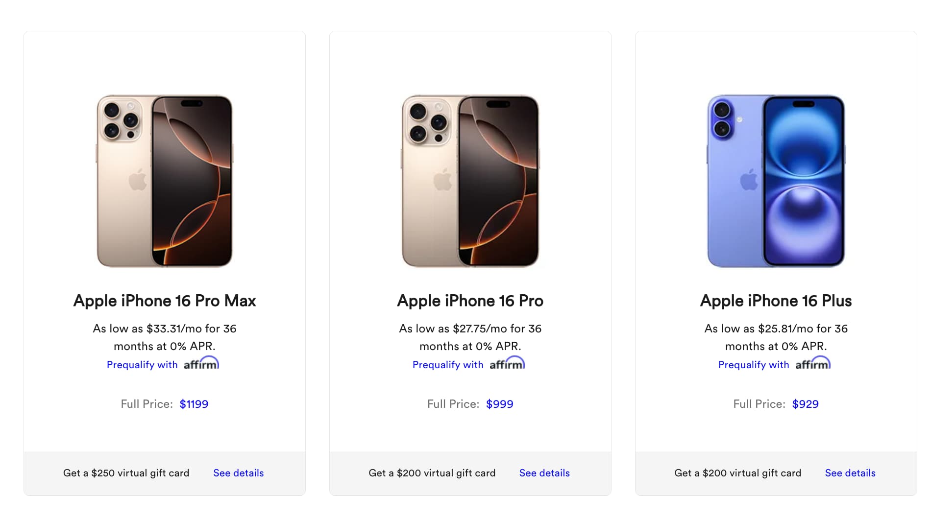 现在visible有iphone 16送$100-$250礼卡的活动了,需要携号转网3个月。我自己的机子这里trade in 价格比官网高一些,感觉看起来是最省心的之一