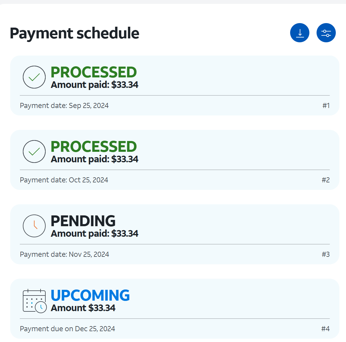这里点进去看有几个 installments 付完了的,如果有三个就基本安全了可以截图做记录了,但是你这个bill从Oct22开始到现在应该已经91天了,按理说也是 eligible 的