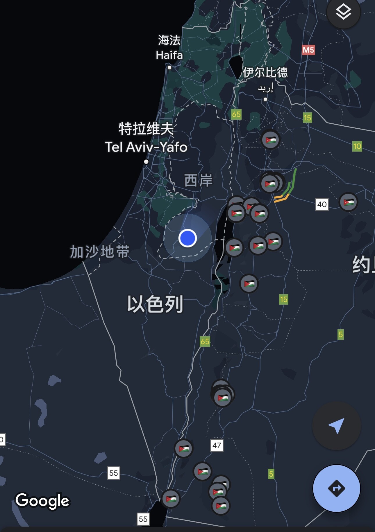 第二天自驾沿着死海公路一直开到了最南边。死海对面就是以色列/巴勒斯坦。在边境附近导航会不好使定位不准。路上有一些警察检查站会招手让你停车,一般会问你来自哪里,看到是游客就直接放行了。