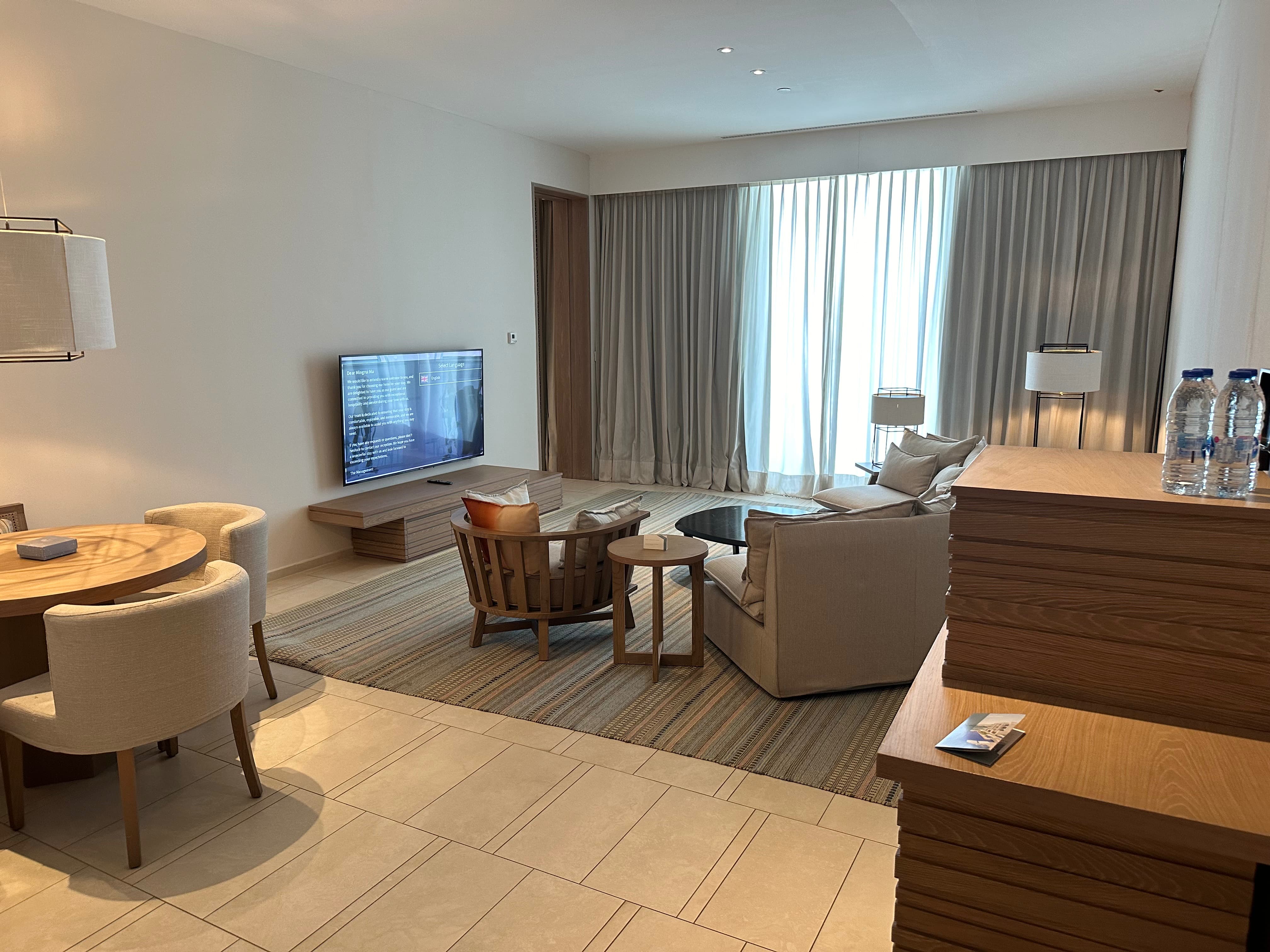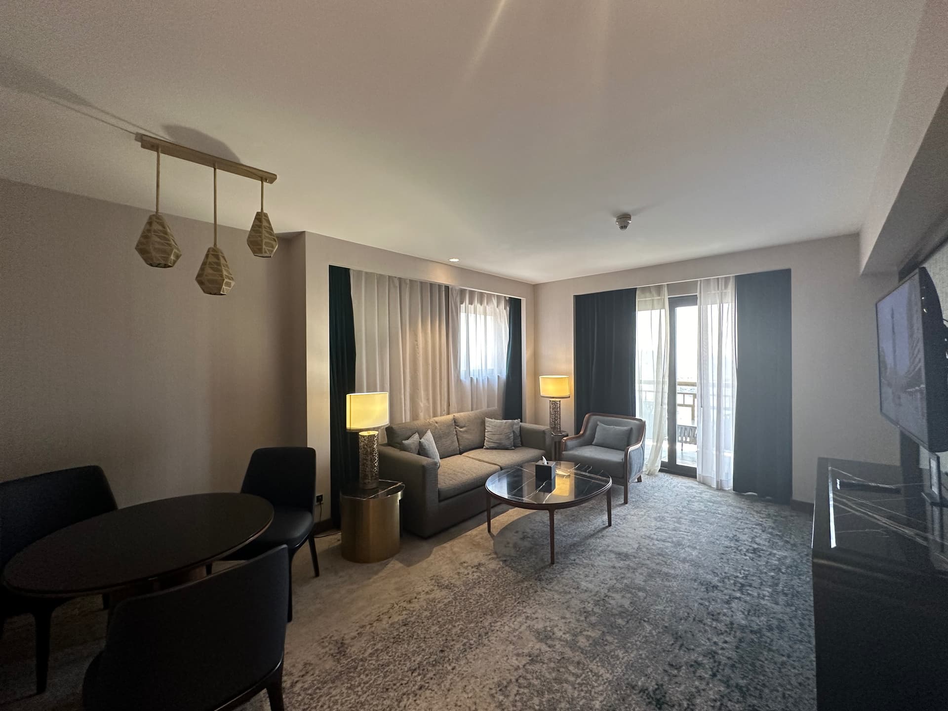 酒店开在Ayla度假村里,整体感觉很新且设计很酷。免费valet。球客给了套