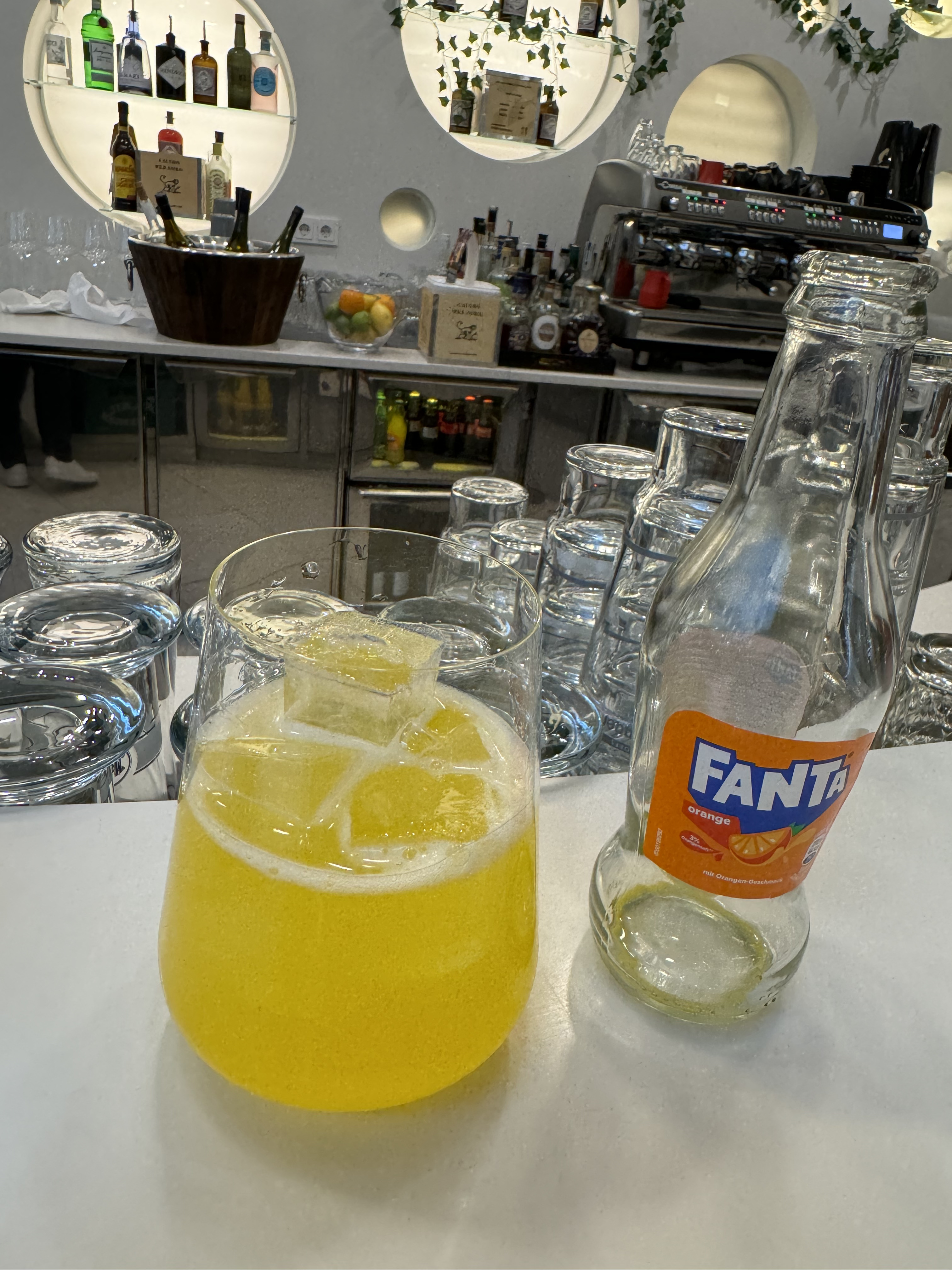 作为环球客,入住让我可以到bar喝一杯。我就来了杯芬达。