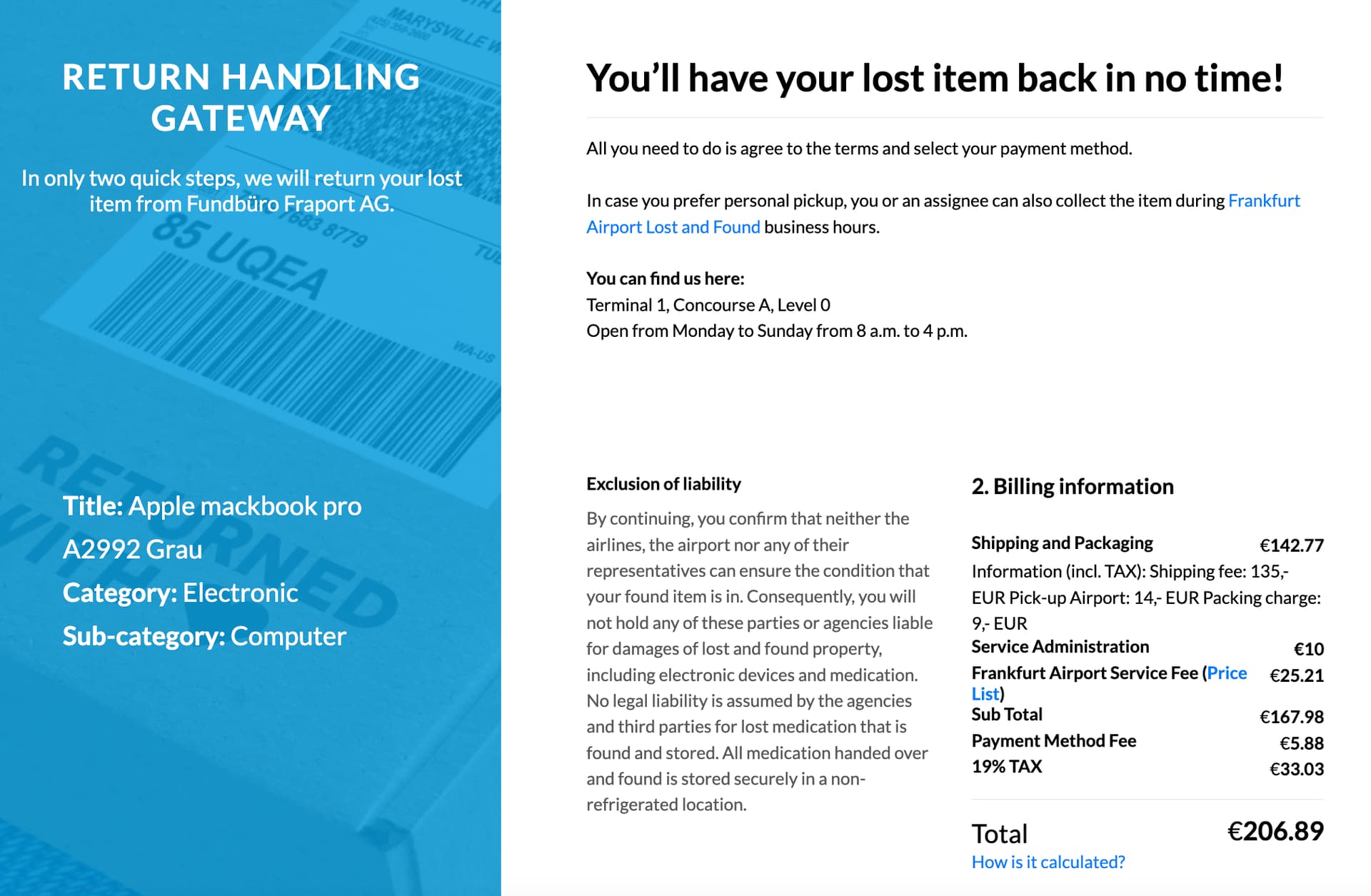 - FRA的lost and found似乎是机场和LH共有的。LH说他们飞FRA的飞机,也直接用机场的lost and found。因为这次返航航班的确是飞FRA,所以我也在上面挂失。