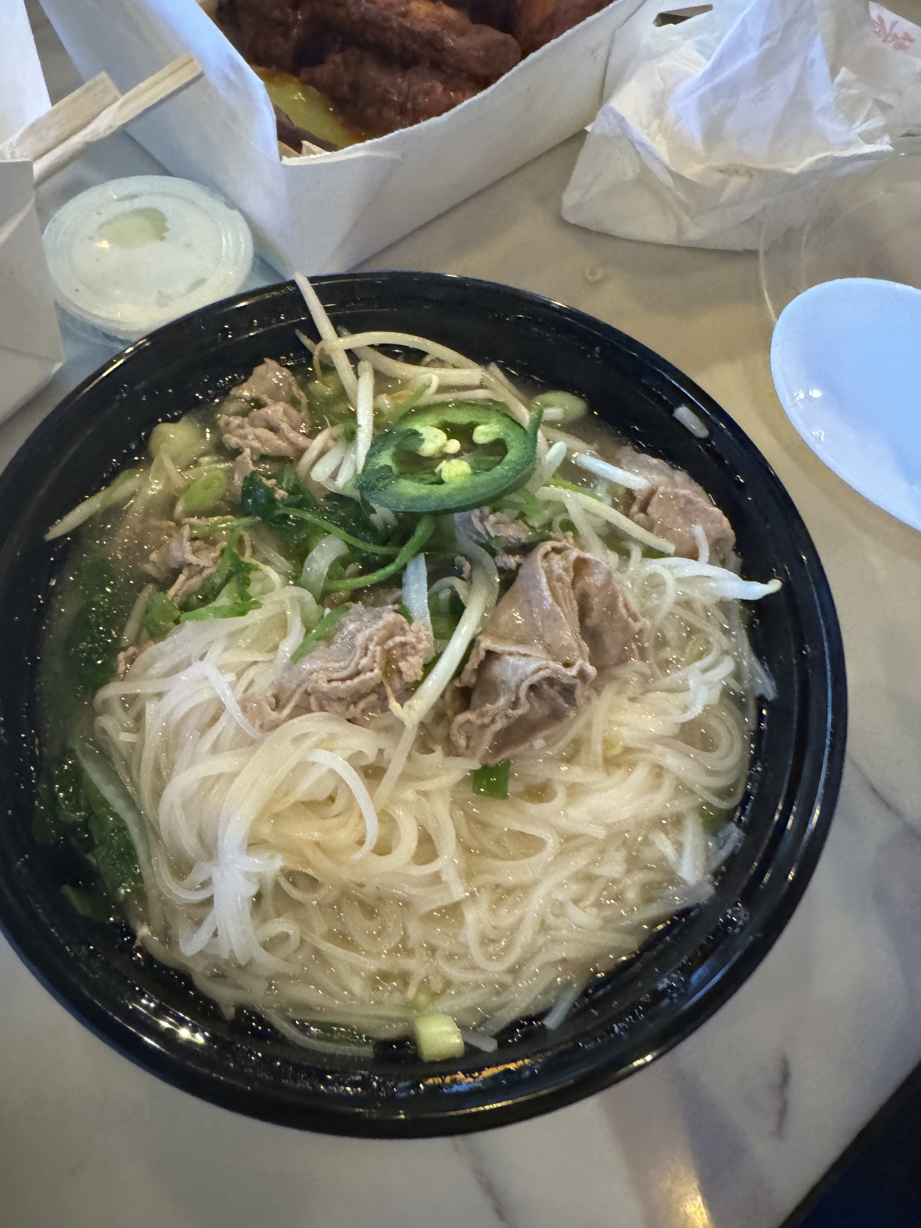 先去C的意大利菜弄了10瓶水, 然后又去main的brewtop 吃晚饭,可惜只能让我带一个guest. 无奈只能打包又去N的越南菜吃越南粉外加几瓶水。最后实在拿不动了。