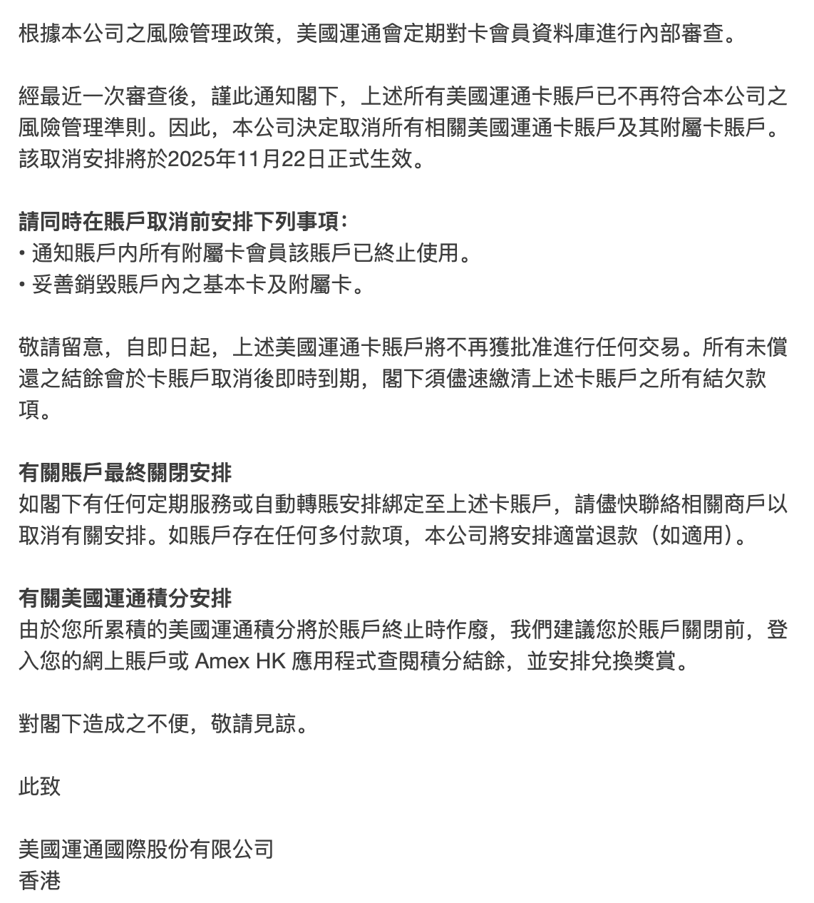 (比Amex US仁慈,贴心地建议关户前妥善兑换积分