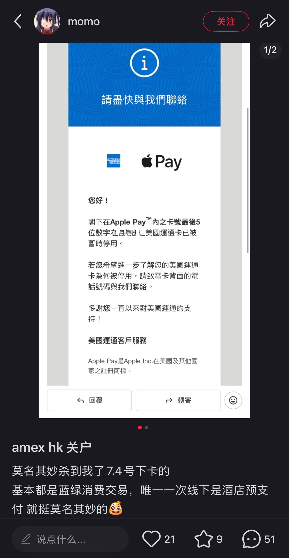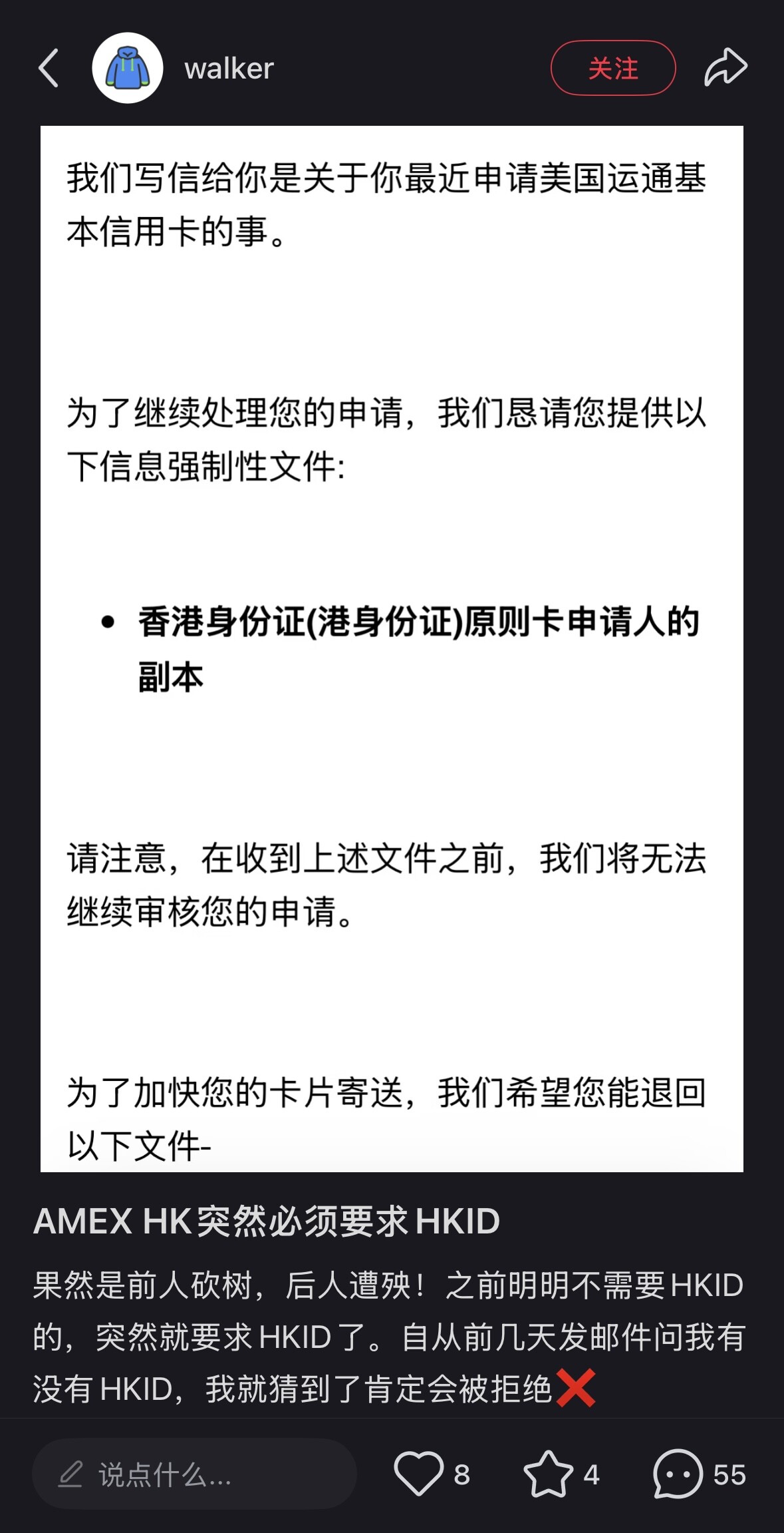 好像触发了FR,amex HK要bank statement和税表