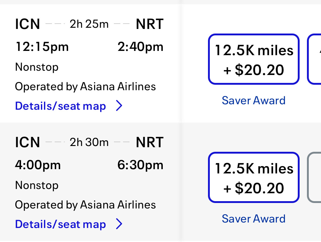 如图上,山东航空到ICN, ICN韩亚到NRT。