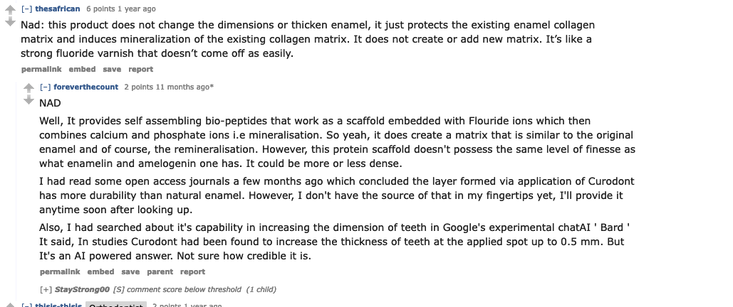 今天去看牙医说我有几个cavity,但是还没到做filing的程度,说是可以做Curodont Repair就是可以把cavity提前堵住,还能regenerate enamel.