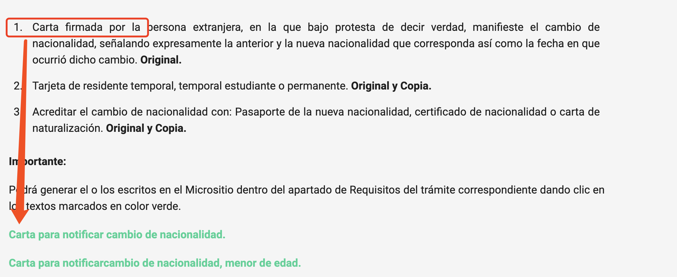在Requisitos里面有一个Carta para notificar cambio de nacionalidad