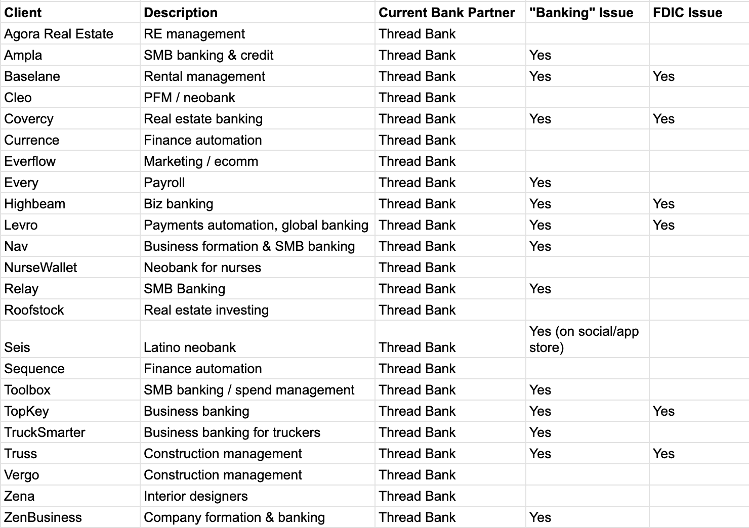 大部分人应该没有直接接触过 Thread Bank,但是他家因为提供了 BaaS (Bank as a service),所以有 35 家 fintech 和 NeoBank 受到影响。