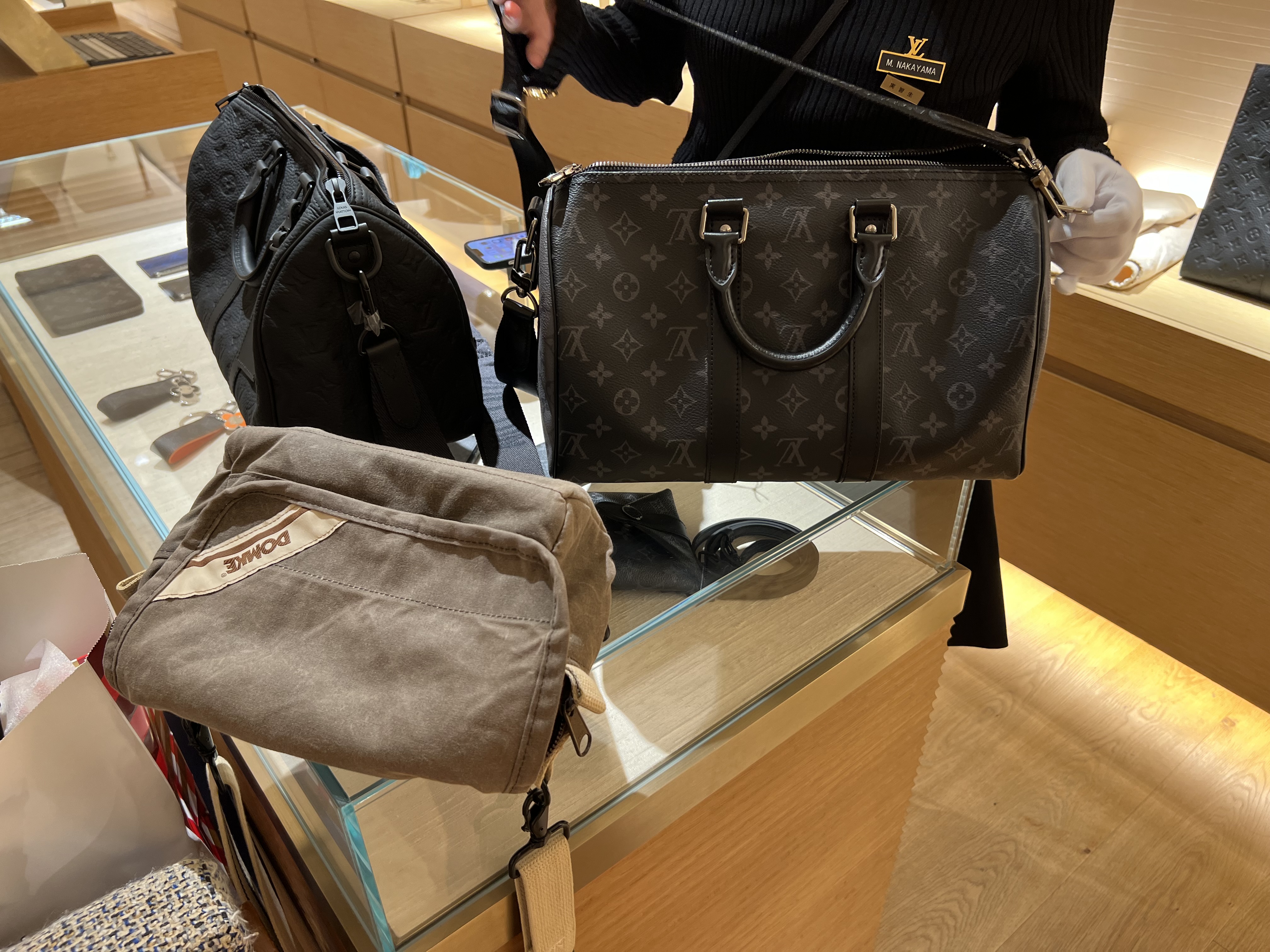 这个包身是帆布质地,带子部分是牛皮。帆布质地比牛皮轻,很耐用不太担心刮蹭,包的形状可以放不少杂物
