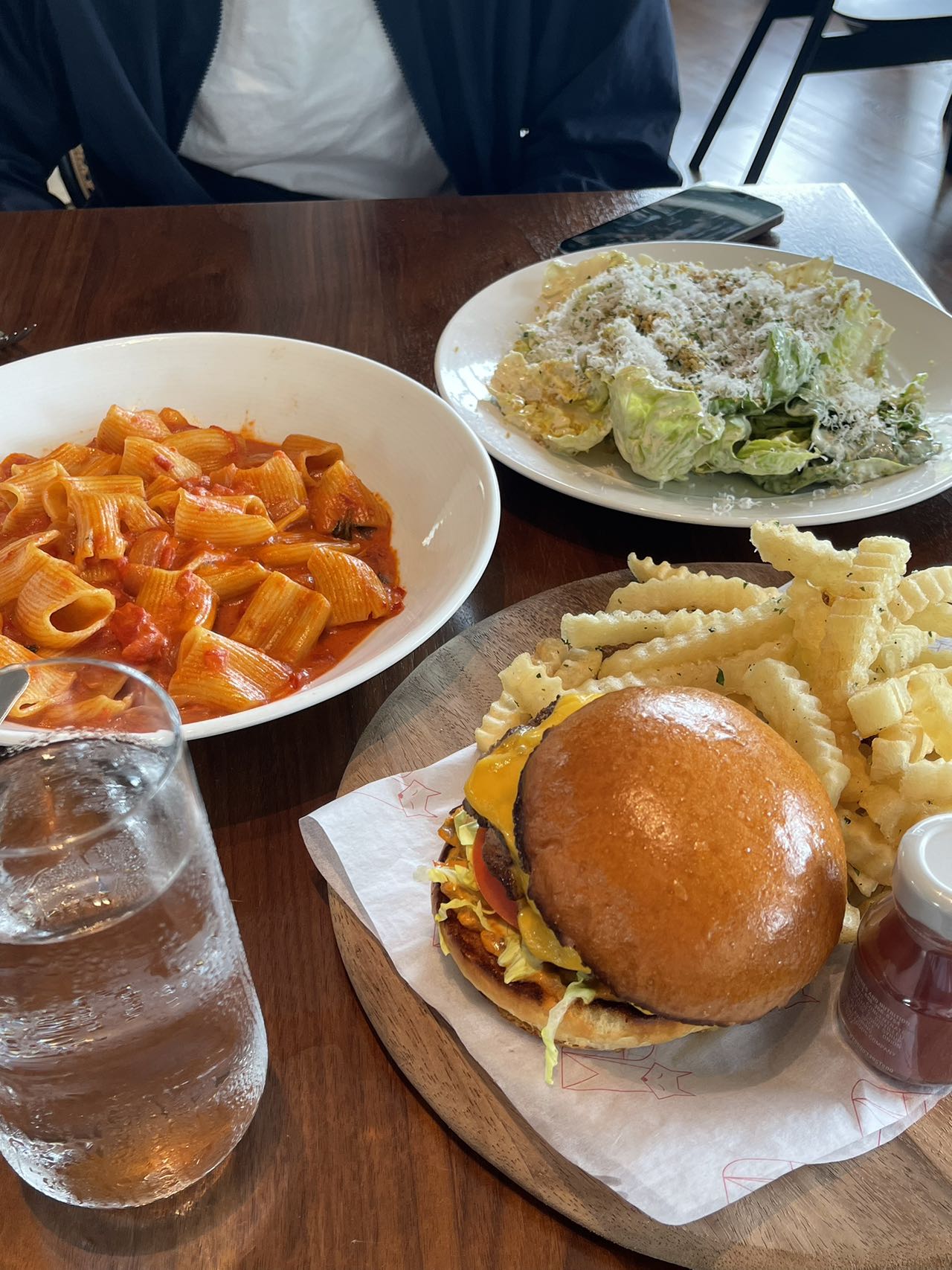 周末的选择多一些,brunch甚至可以到下午三点,我们又点了rigatoni+burger+沙拉,餐厅的出品都不错,只是通常点完之后要等15-20min后才上菜,需要一些耐心。