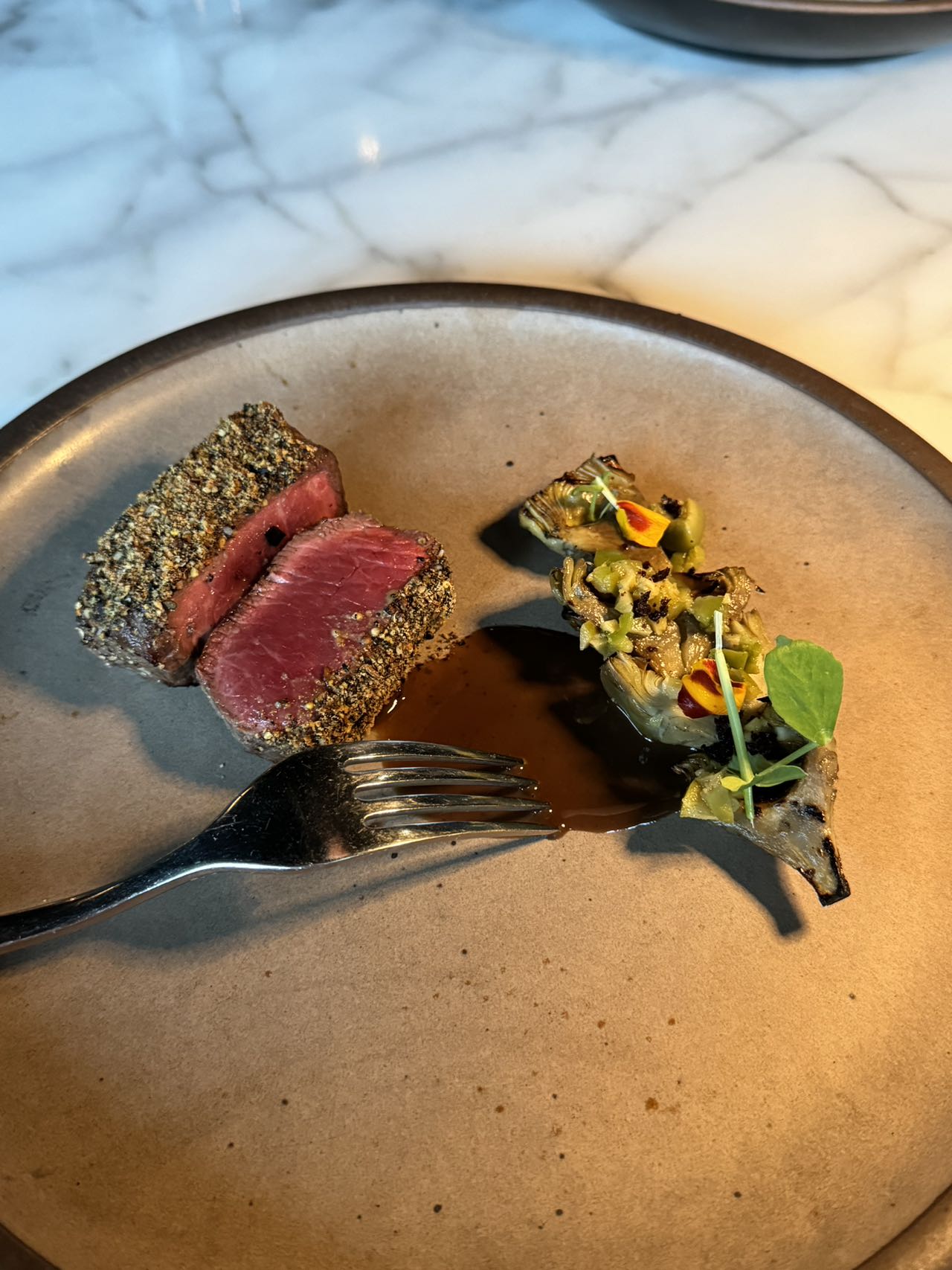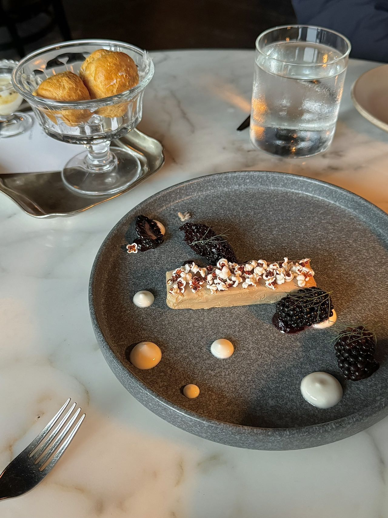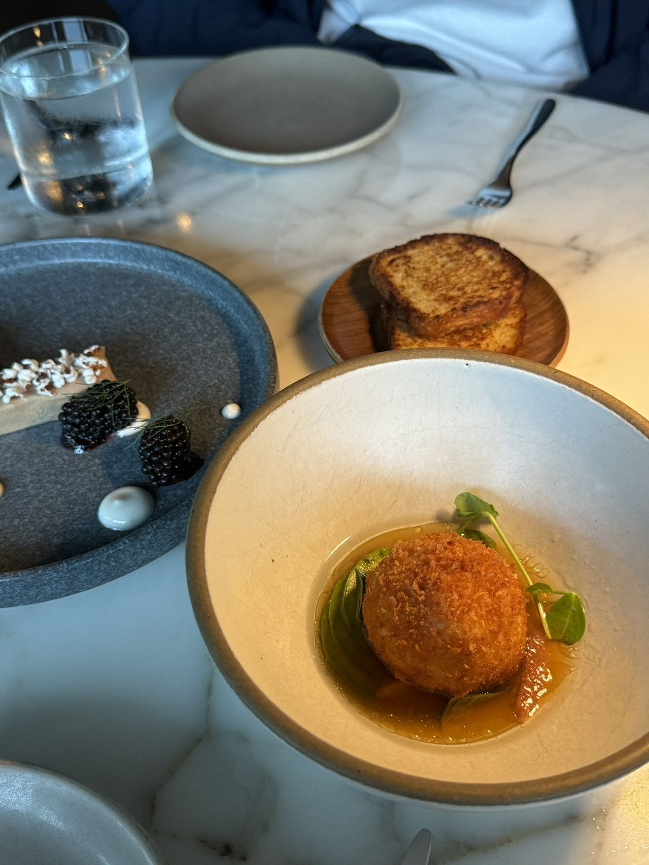 overall比较普通,一个人245的价格,没有哪一个特别出彩的菜,甜品比较雷,离thompson很近,走10min左右,餐厅在瑞吉里,整体走一个老钱风。