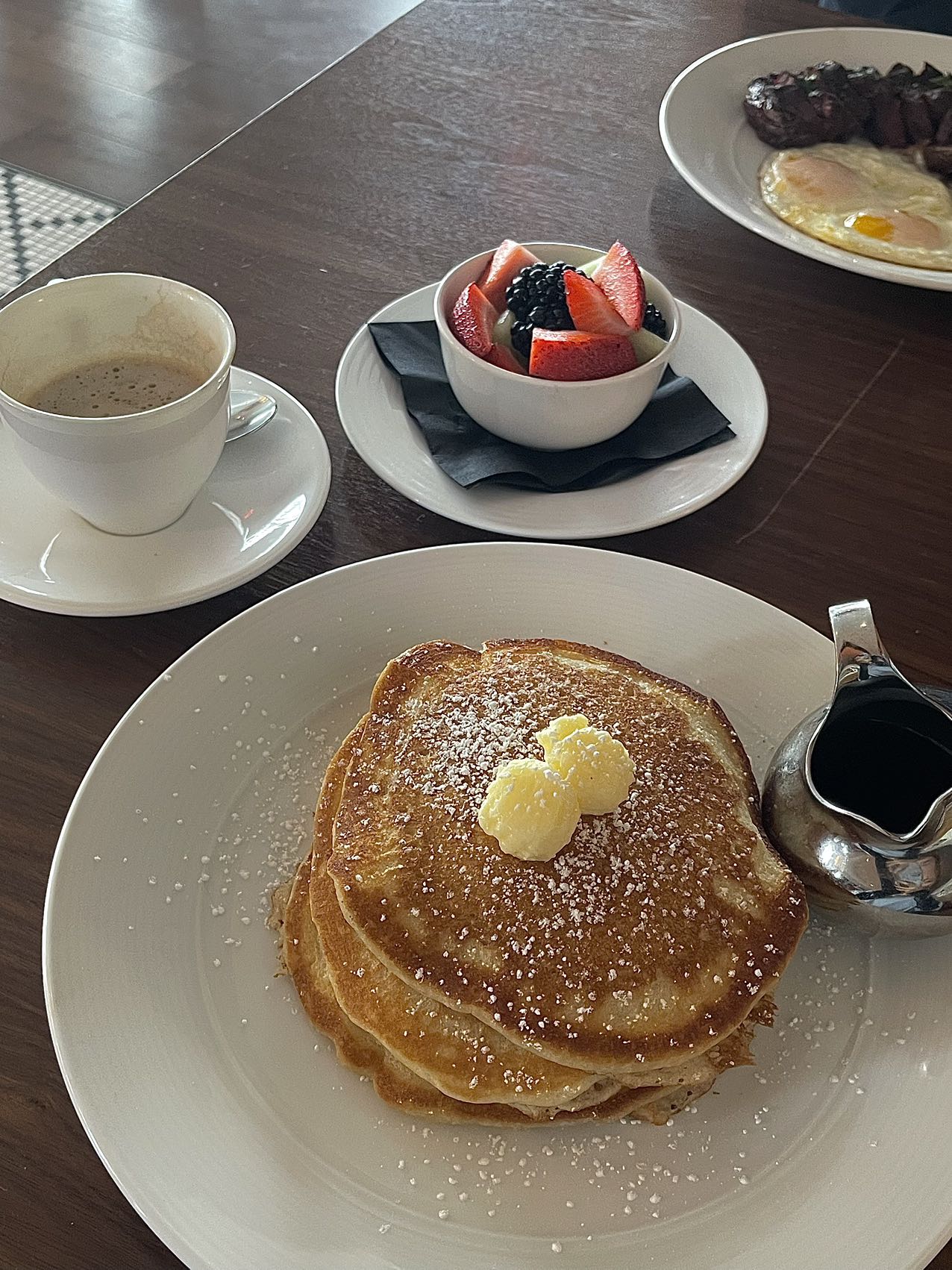 早餐周中的菜单比较简单,pancake和steak&eggs都不错
