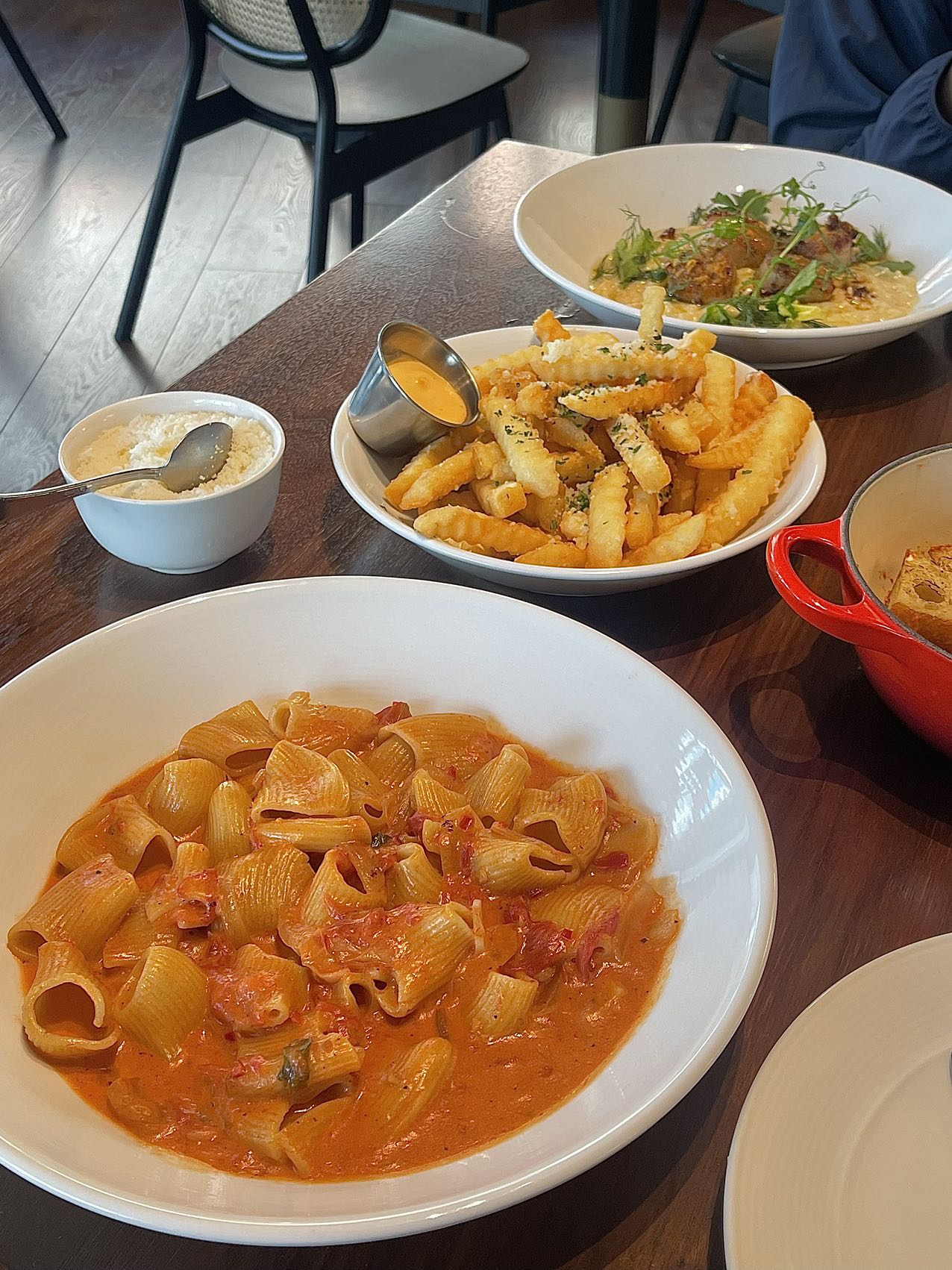 Meatball普通,Rigatoni超出想象(感觉调味不输carbone,面略输一点),truffle fries普通,scallop risotto超出想象,四个大scallop,risotto的调味也很棒,饭后还送了一个提拉米苏,加上小费正好100刀出头