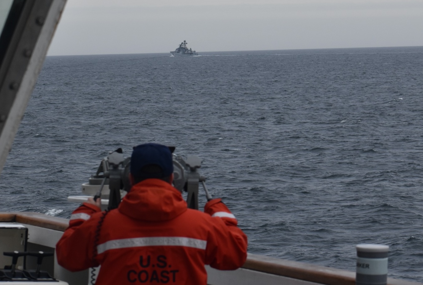The Coast Guard said the Chinese vessels had responded to radio communication and that they had stated their purpose as “freedom of navigation operations”.