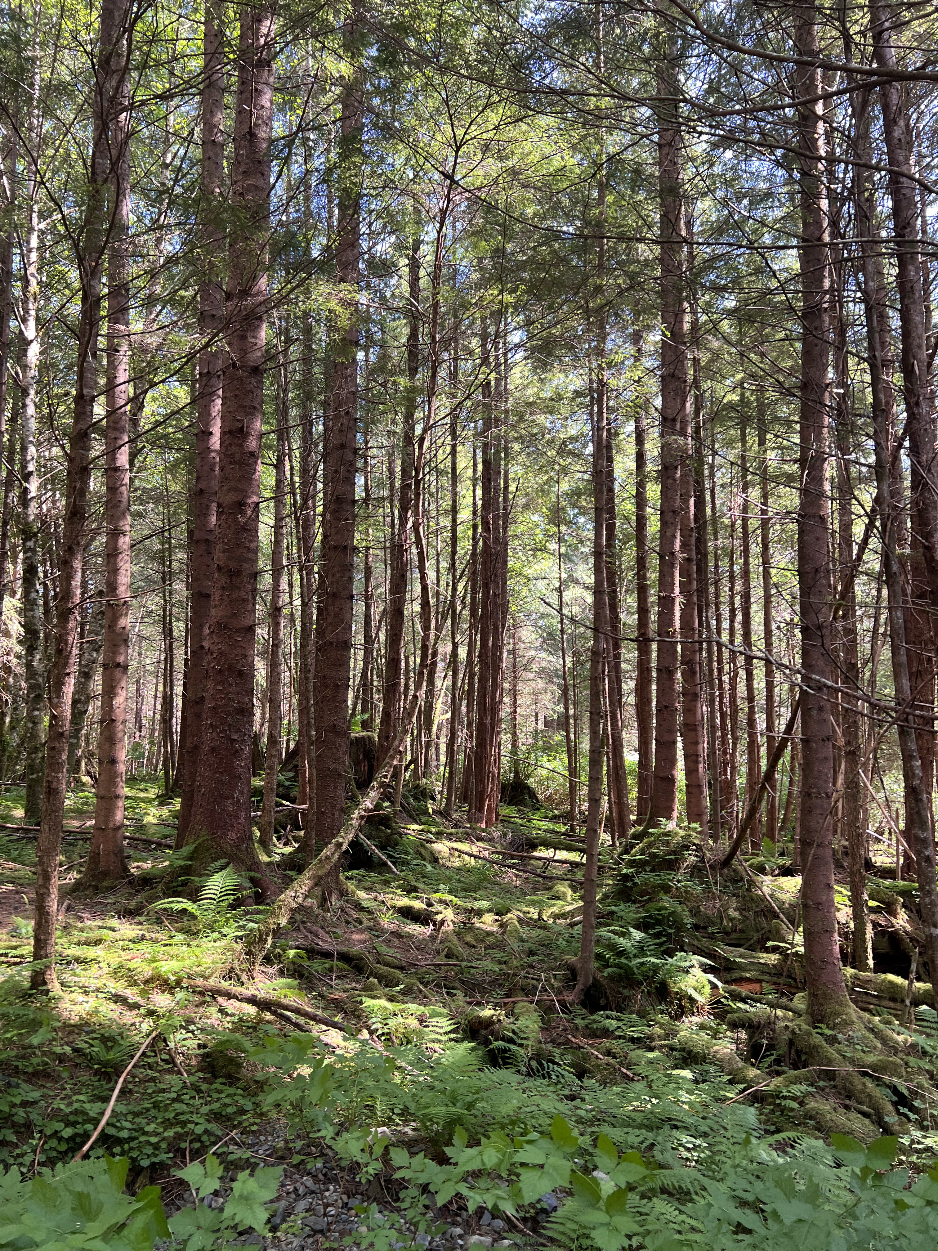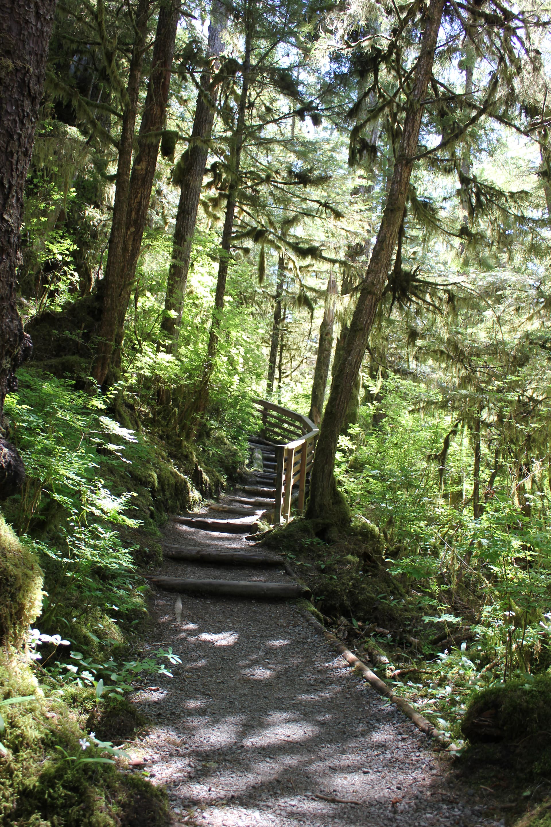 这一片都属于Tongass National forest,植被以温带雨林为主。开车10几分钟到了附近的一个trail。从这里走到perseverance lake,单程大约3 mile