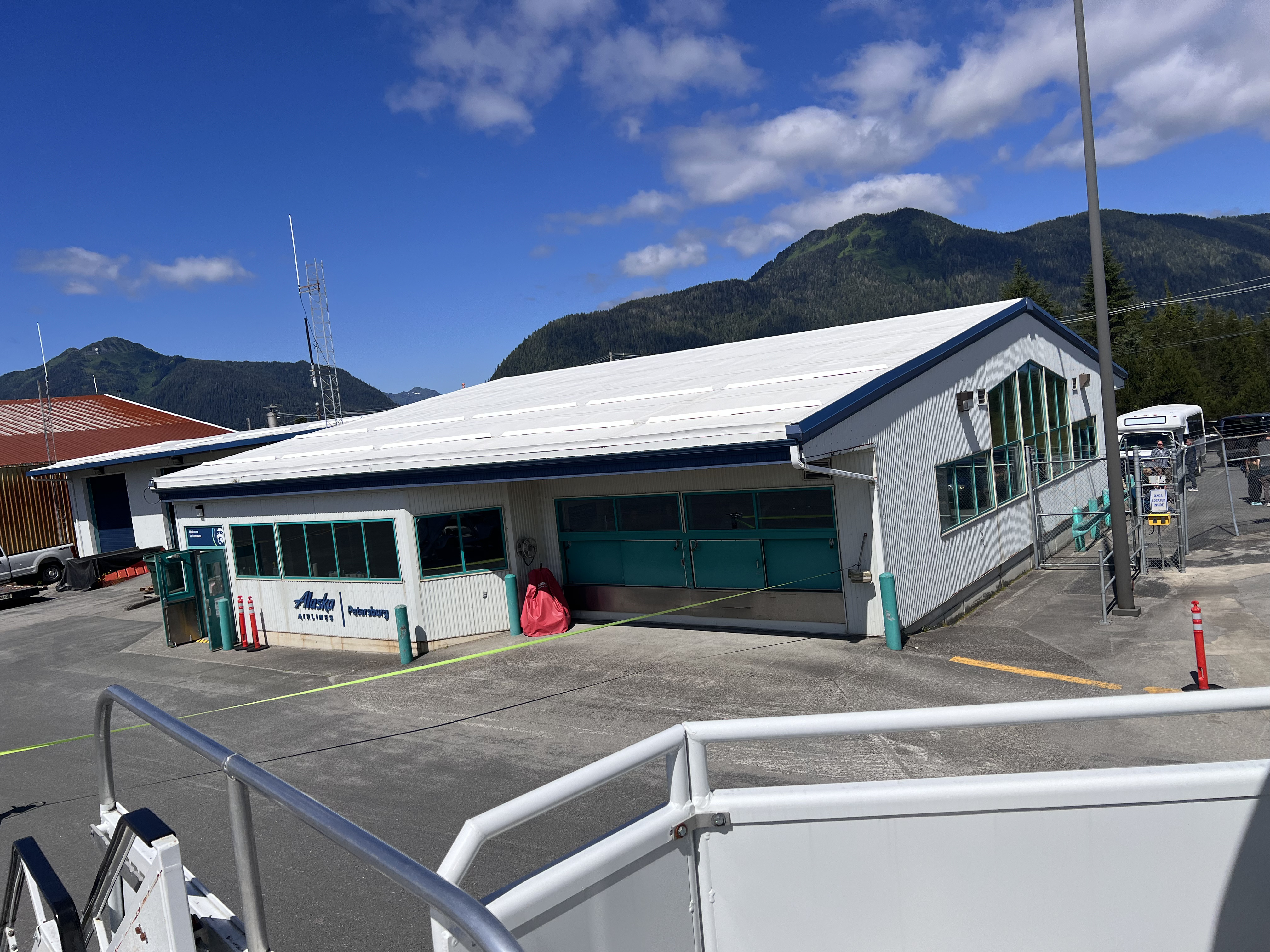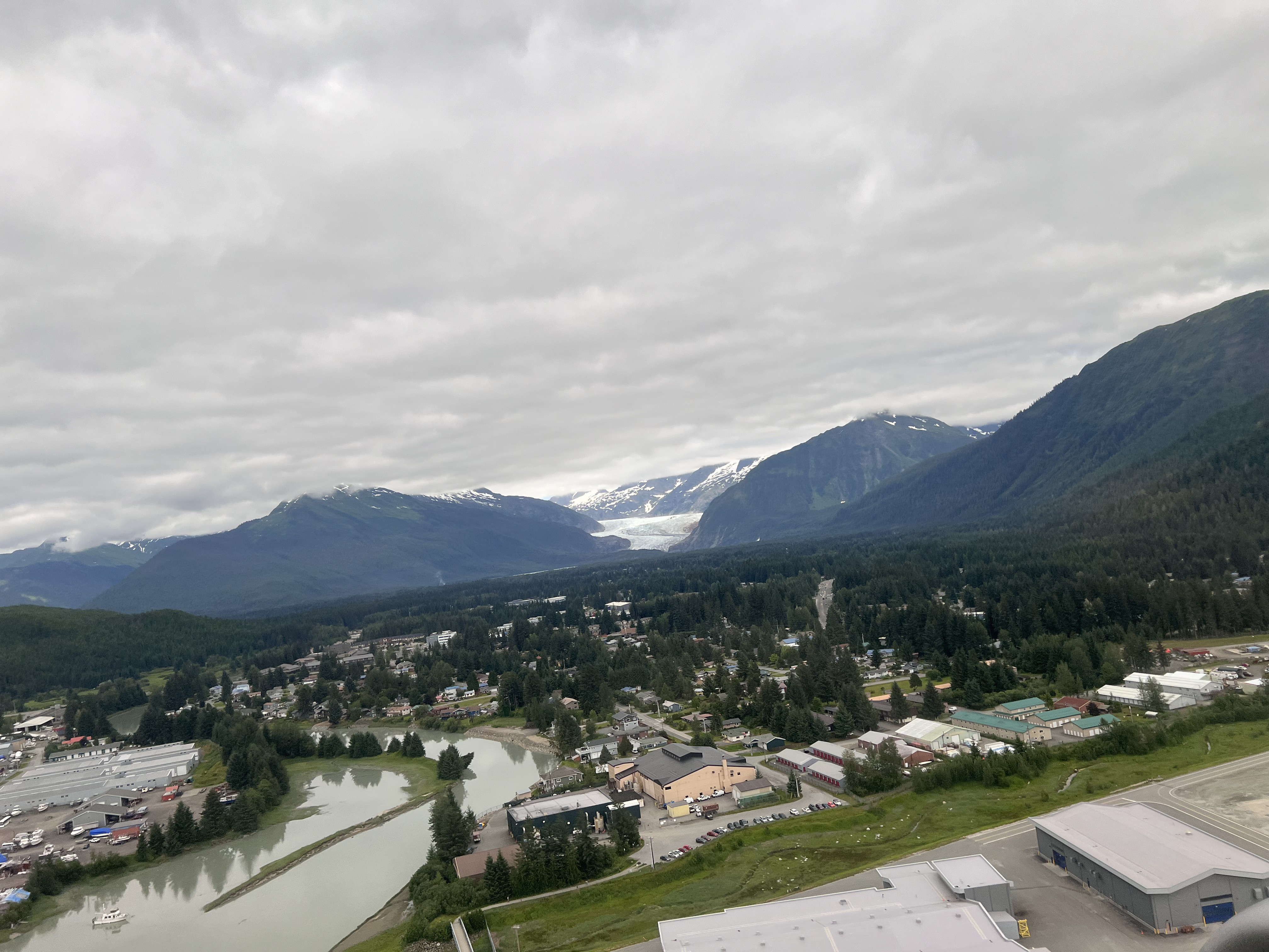 降落前看到Juneau的港口。提前到了Juneau,无论目的地所有乘客都可以下飞机。候机楼里可以买吃的。