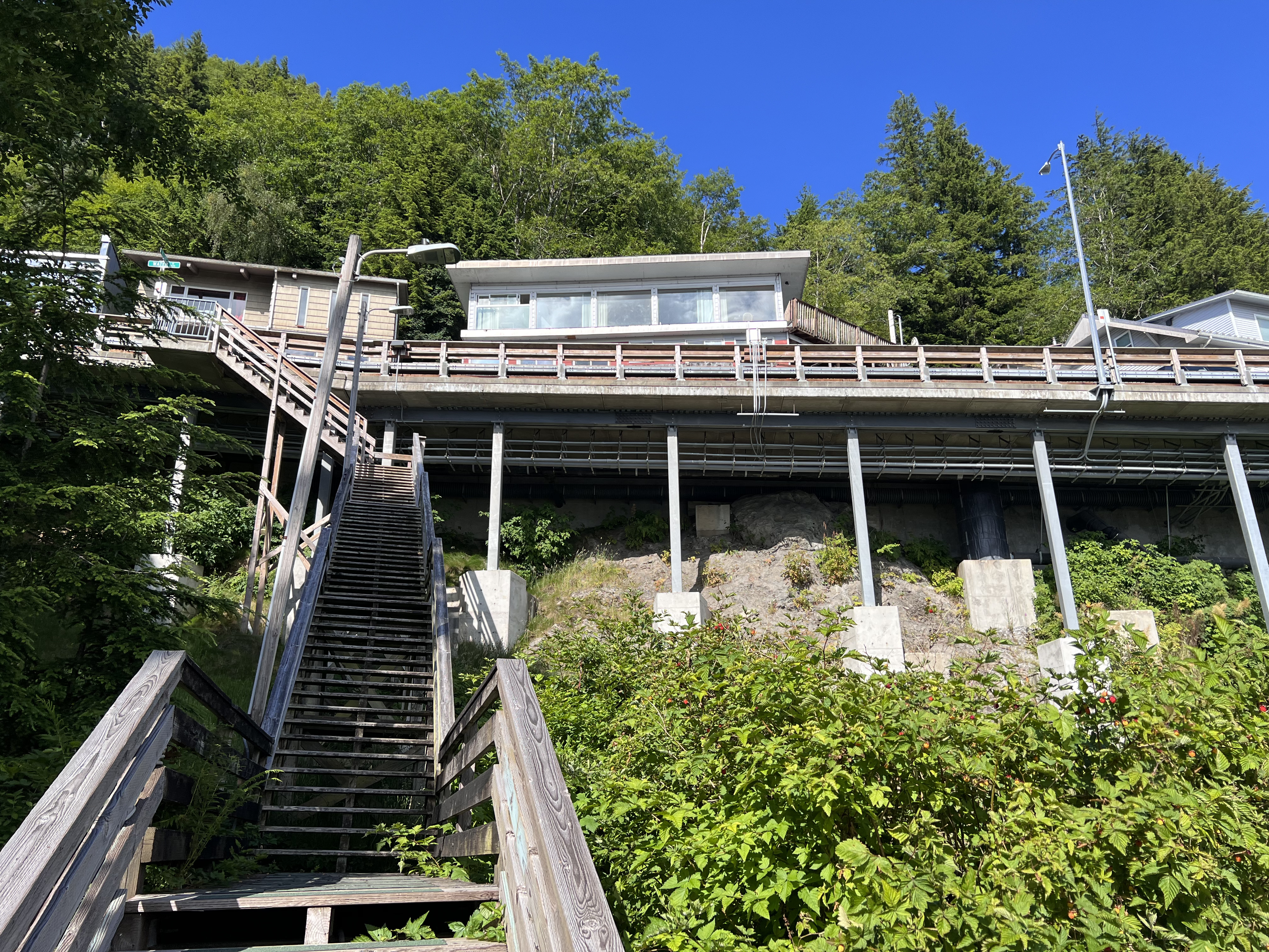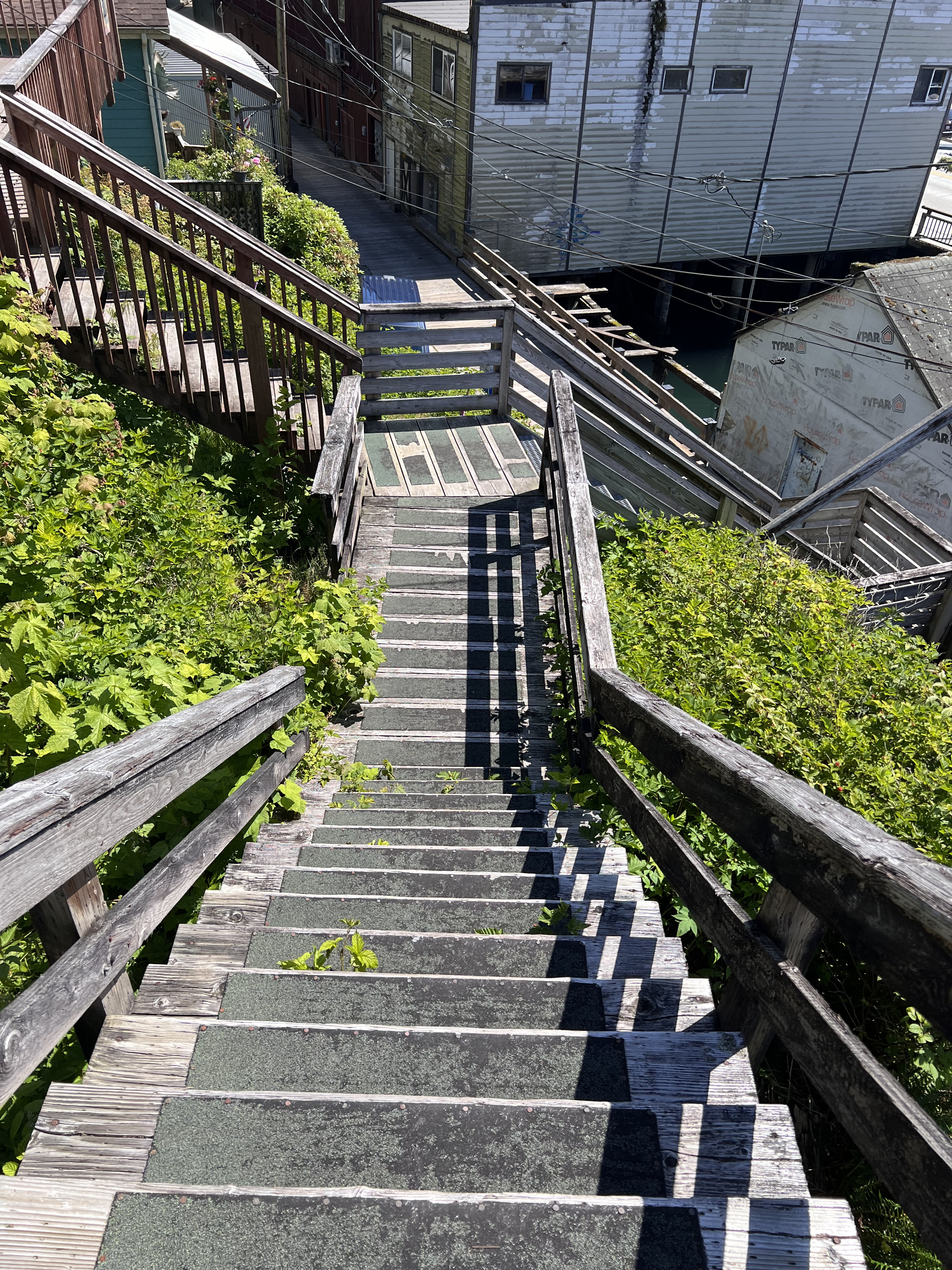 Ketchikan一面临海,一面靠山,平地不多。房子建在山上,下面搭着支撑。