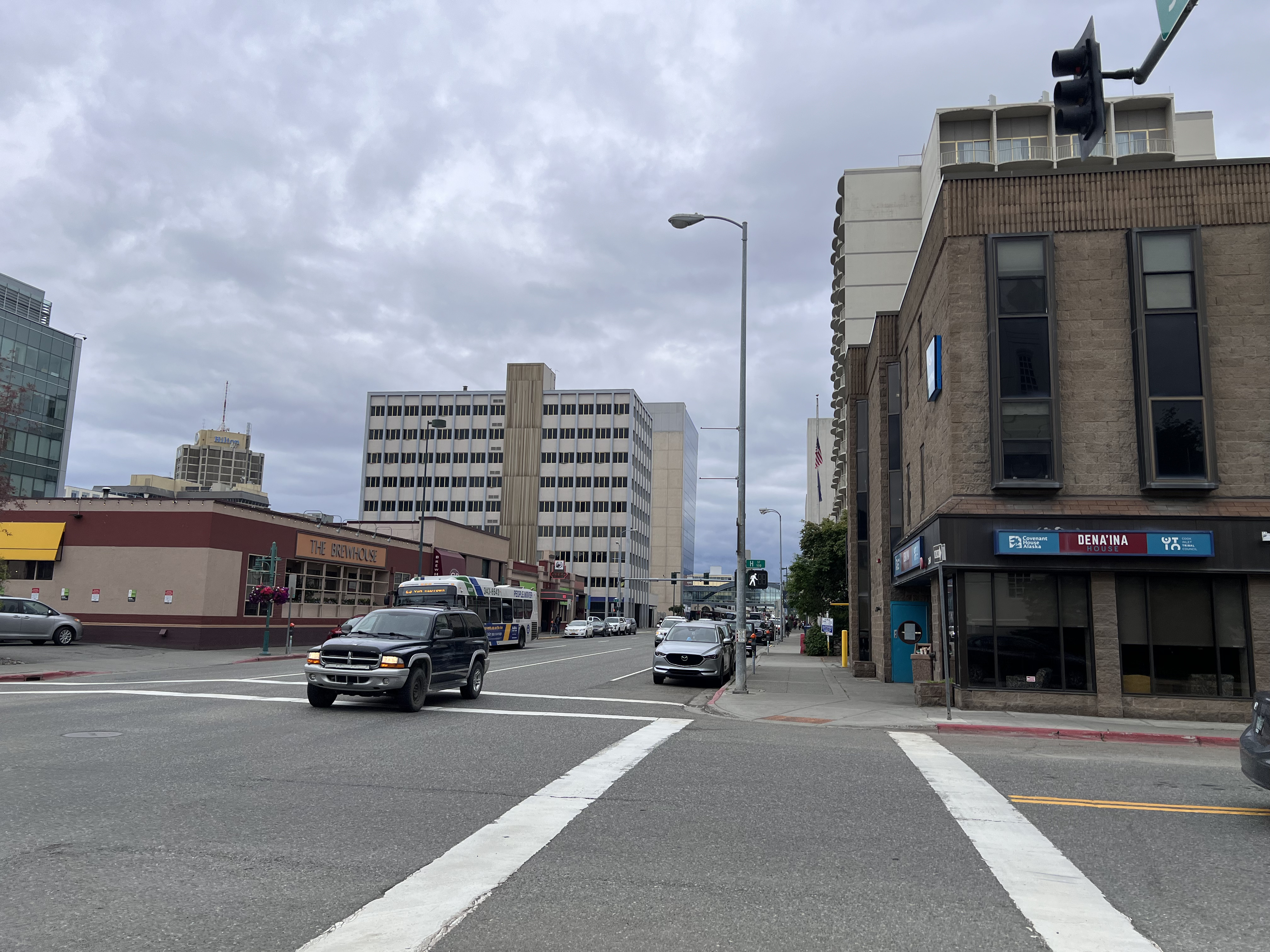 从机场出来有两趟公交,40路去downtown和65路去Diamond center。单程票2$,一日票5$。从机场到downtown大约20几分钟就到了。Anchorage downtown没有太多特色,有一些纪念品店,一些热门饭馆。我觉得值得光顾的是Anchorage museum以及几个租自行车的店。
