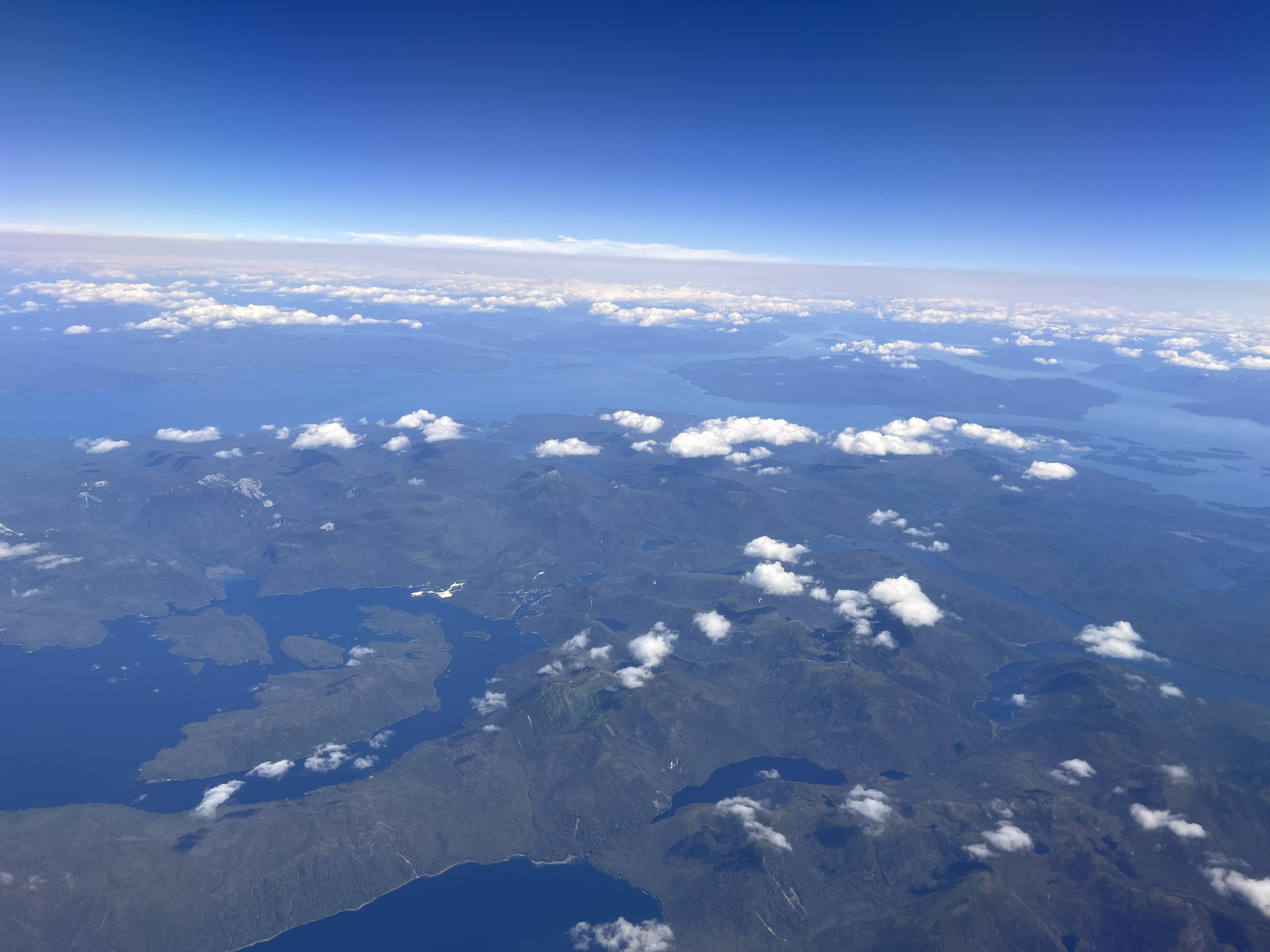 从Sitka到Ketchikan只有180mile, 30几分钟的飞行时间。很幸运的提前一天升了头等。大板凳座位,没有任何服务,除了送杯饮料。