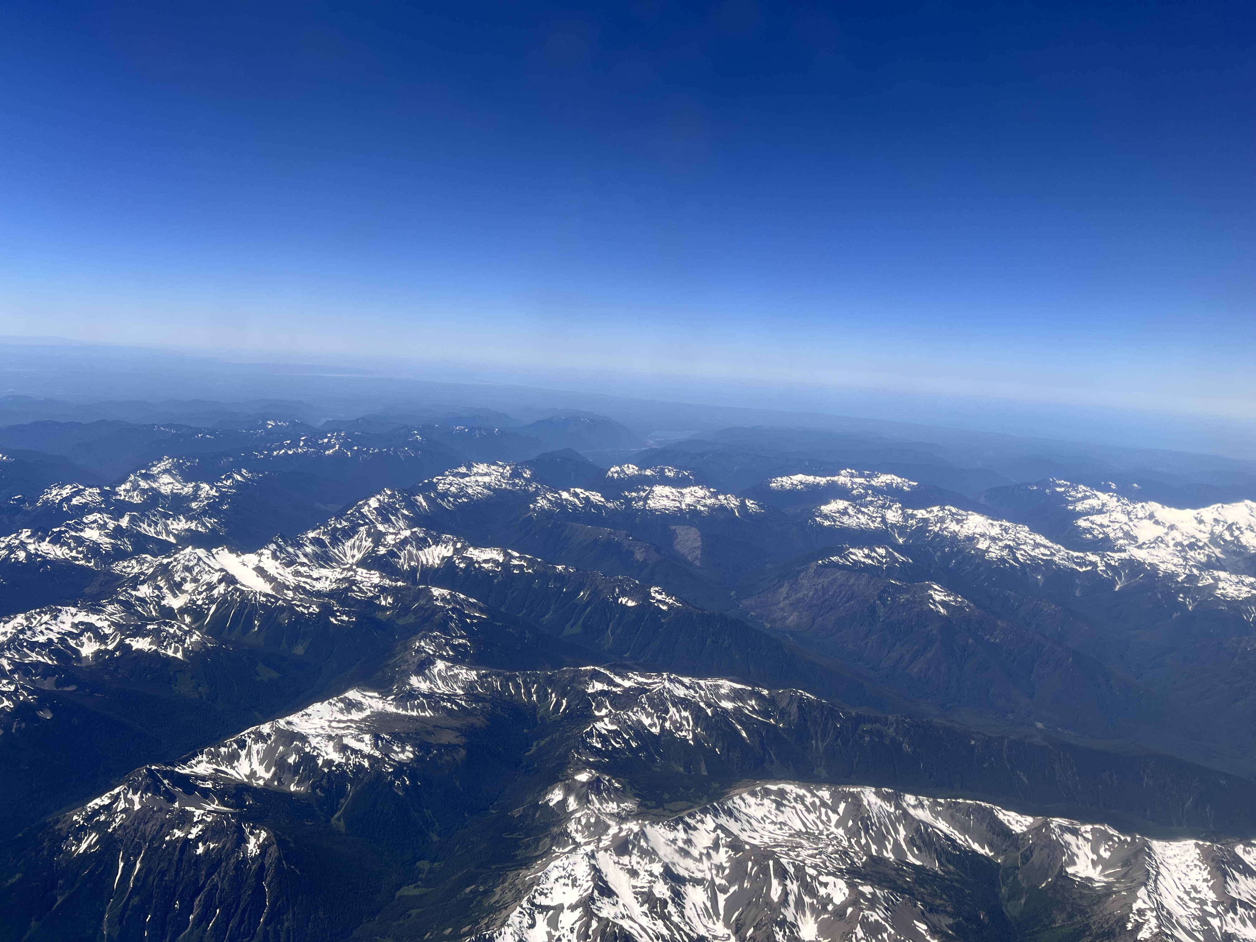 飞行高度大约25000英尺,下面的山上雪还没有完全融化