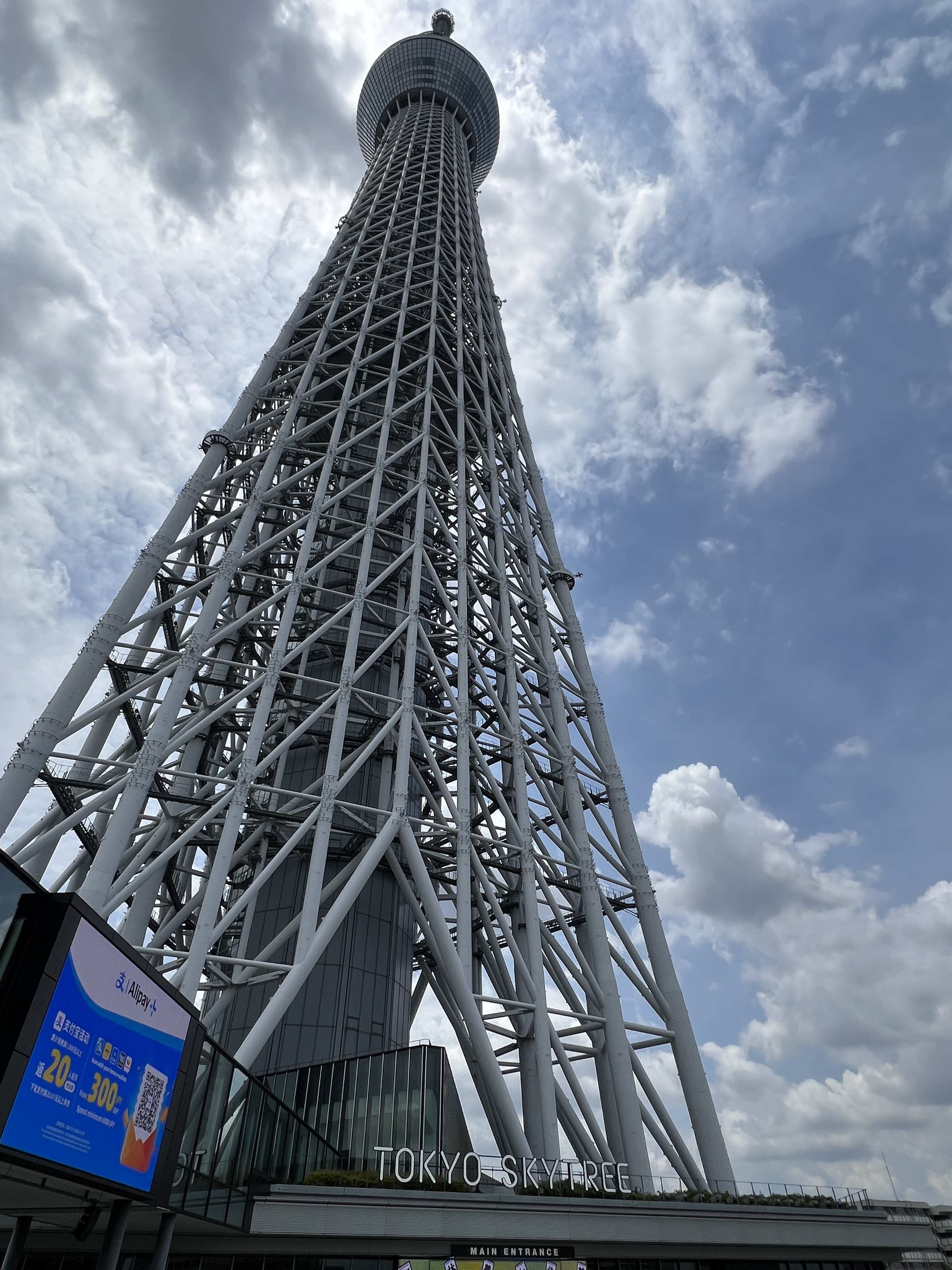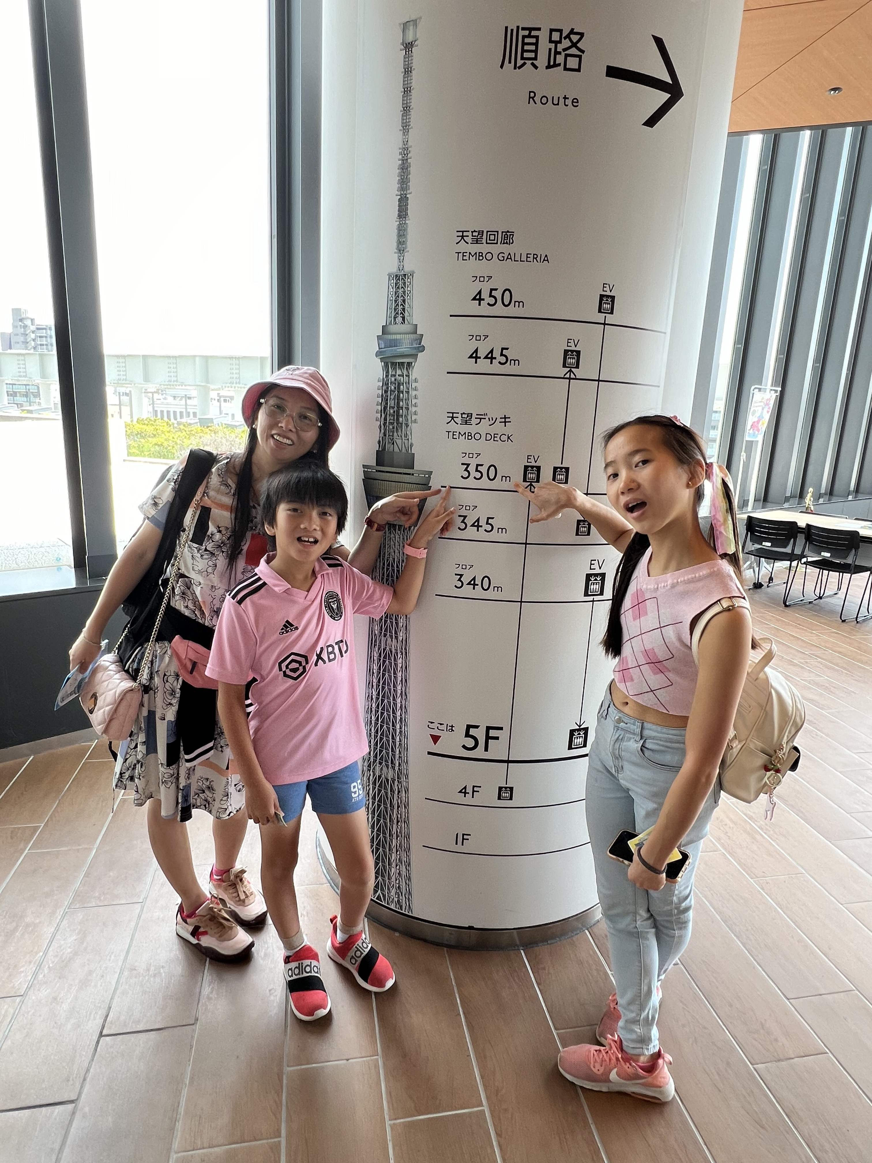 吃完零食买好纪念品从人潮中抽身,地铁三站来到晴空塔。虽然是目前世界第二高楼、第一高塔(迪拜哈里发塔不被认证为tower,只是the tallest building),双胞胎还是问我有什么必要上去吗?我说反正下个月要登哈里发塔,前两名都看看呗 ![]()