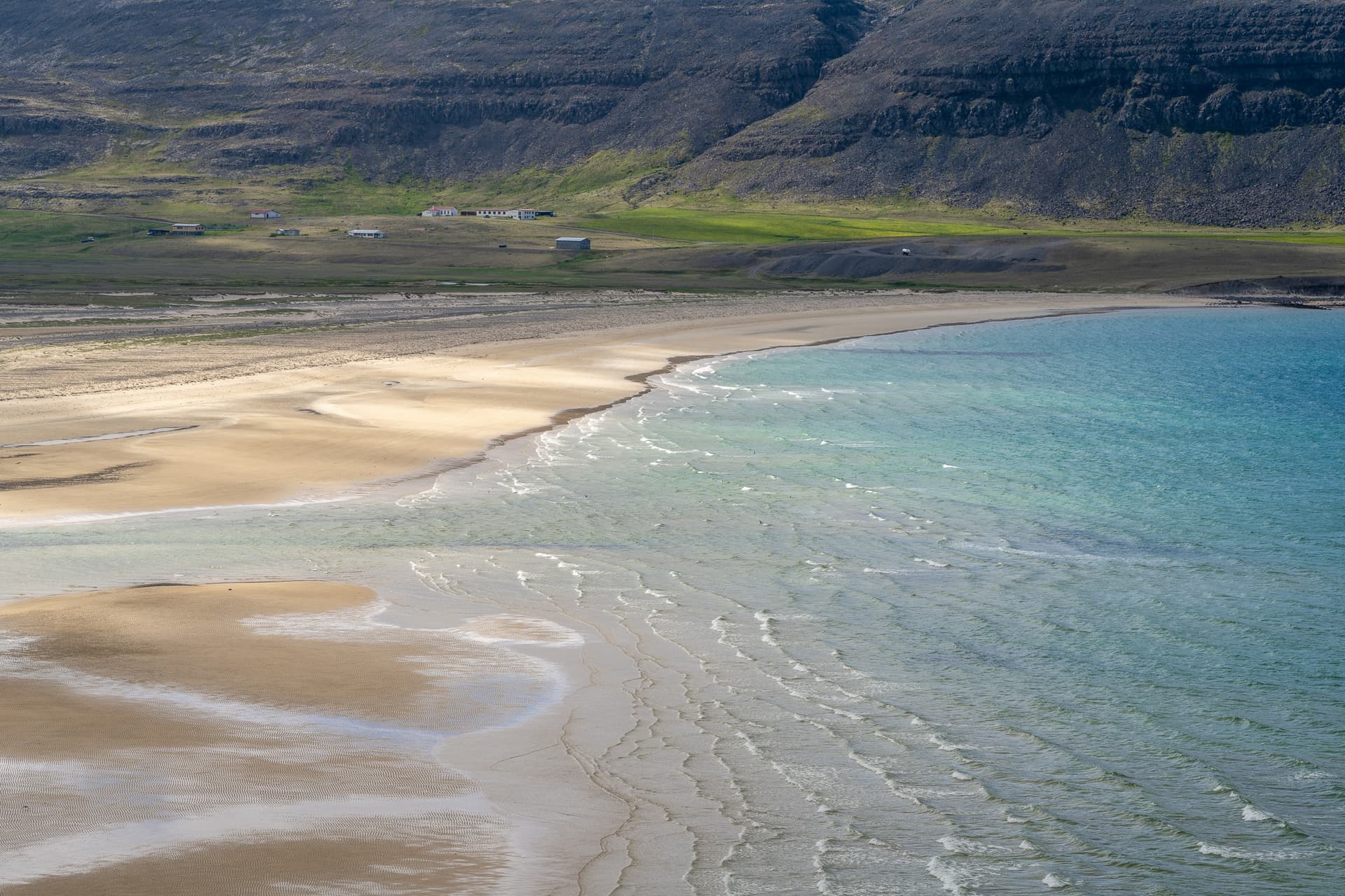 冰岛的西峡湾地区远离冰川,有着北极圈周边内少见的“果冻海”,配上绿山黄沙滩,仿佛来到夏威夷——当时看着觉得新奇,然而过几天到罗弗敦就觉得“不过如此”了……