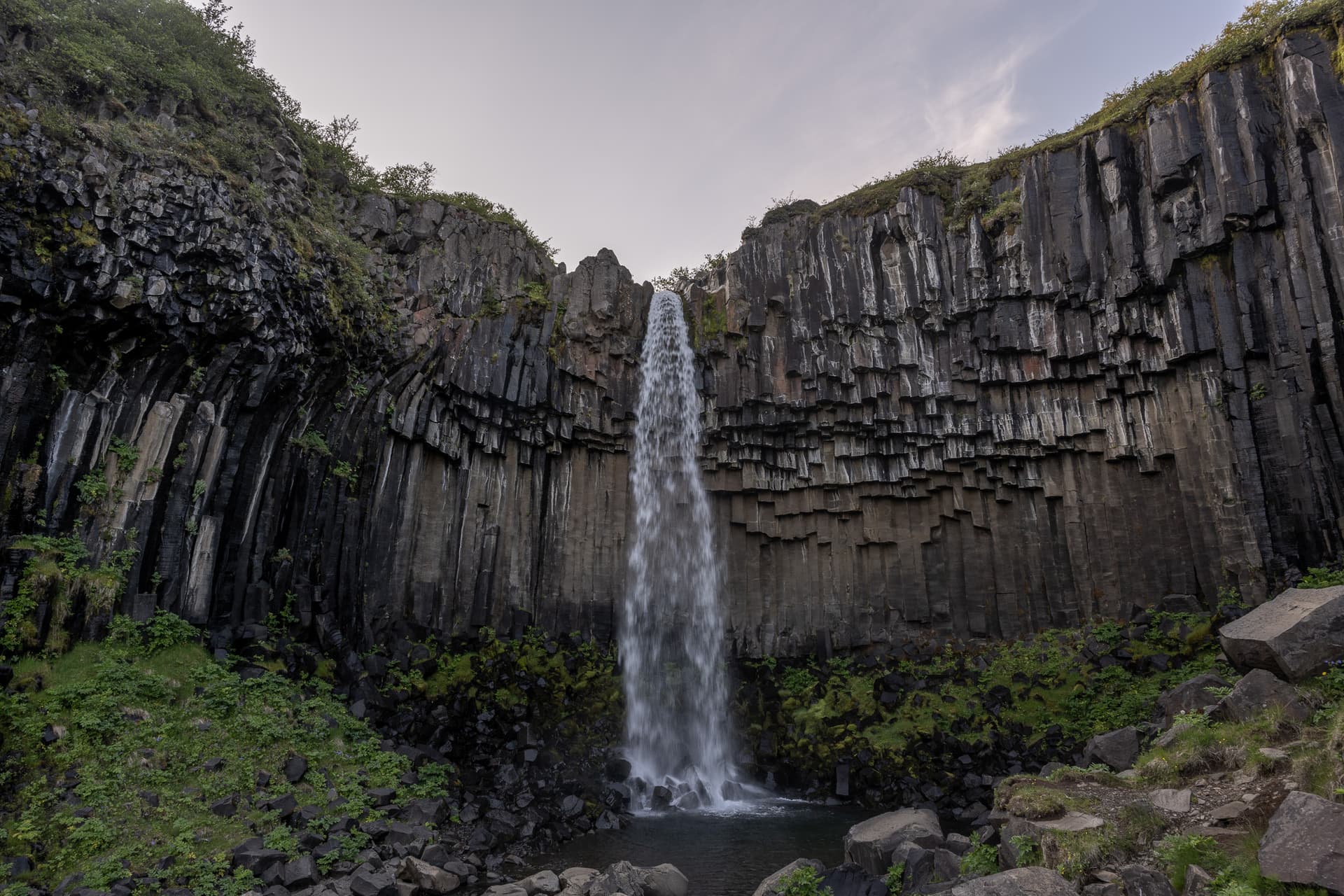 Svartifoss大概是最常出现在冰岛照片中的瀑布之一,但中国游客的数量却不是很匹配,或许是1公里的爬山劝退了大部分打卡游客。我们到时天色比较晚,最佳光线已经过去,随便拍两张完事……