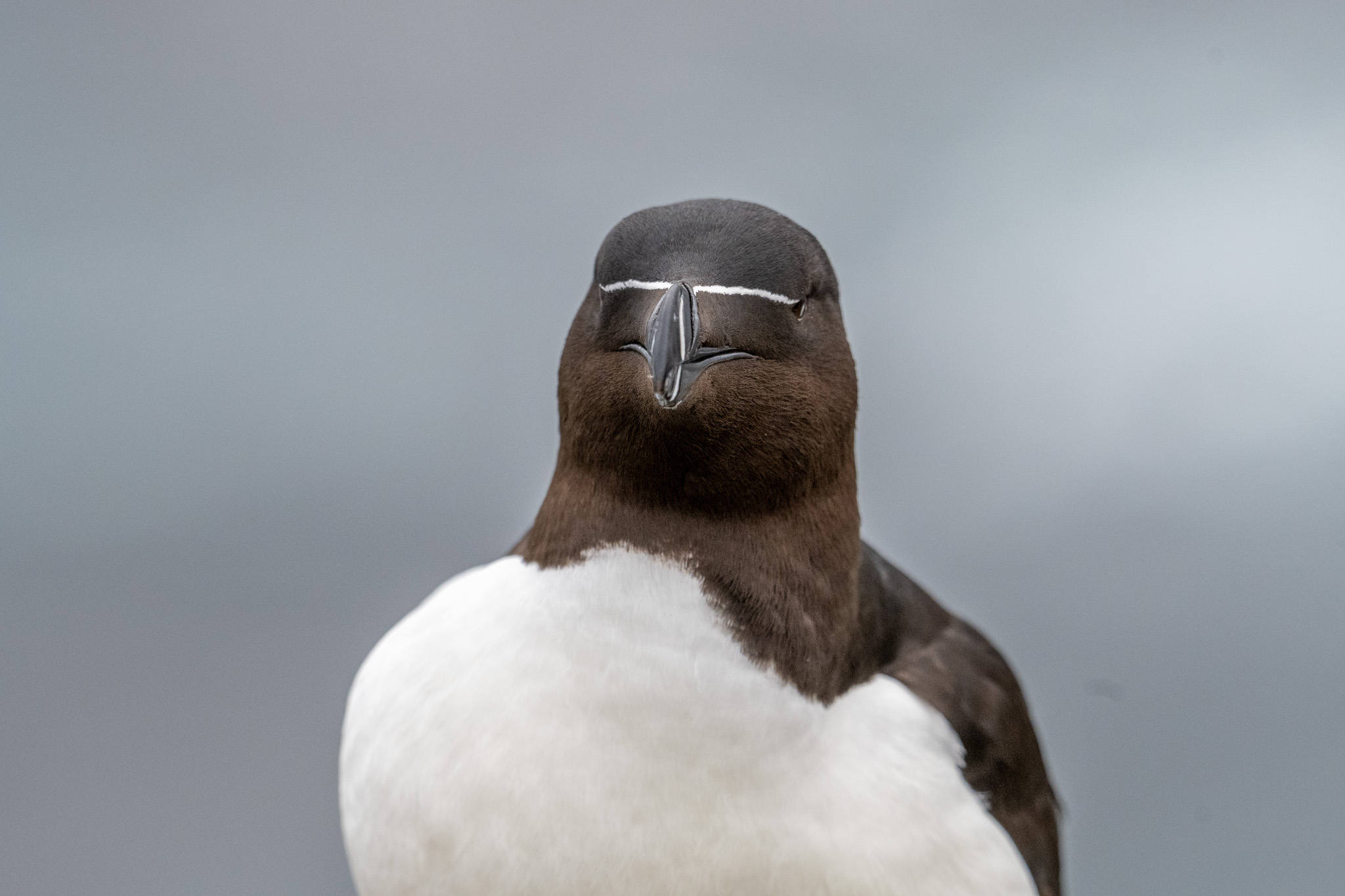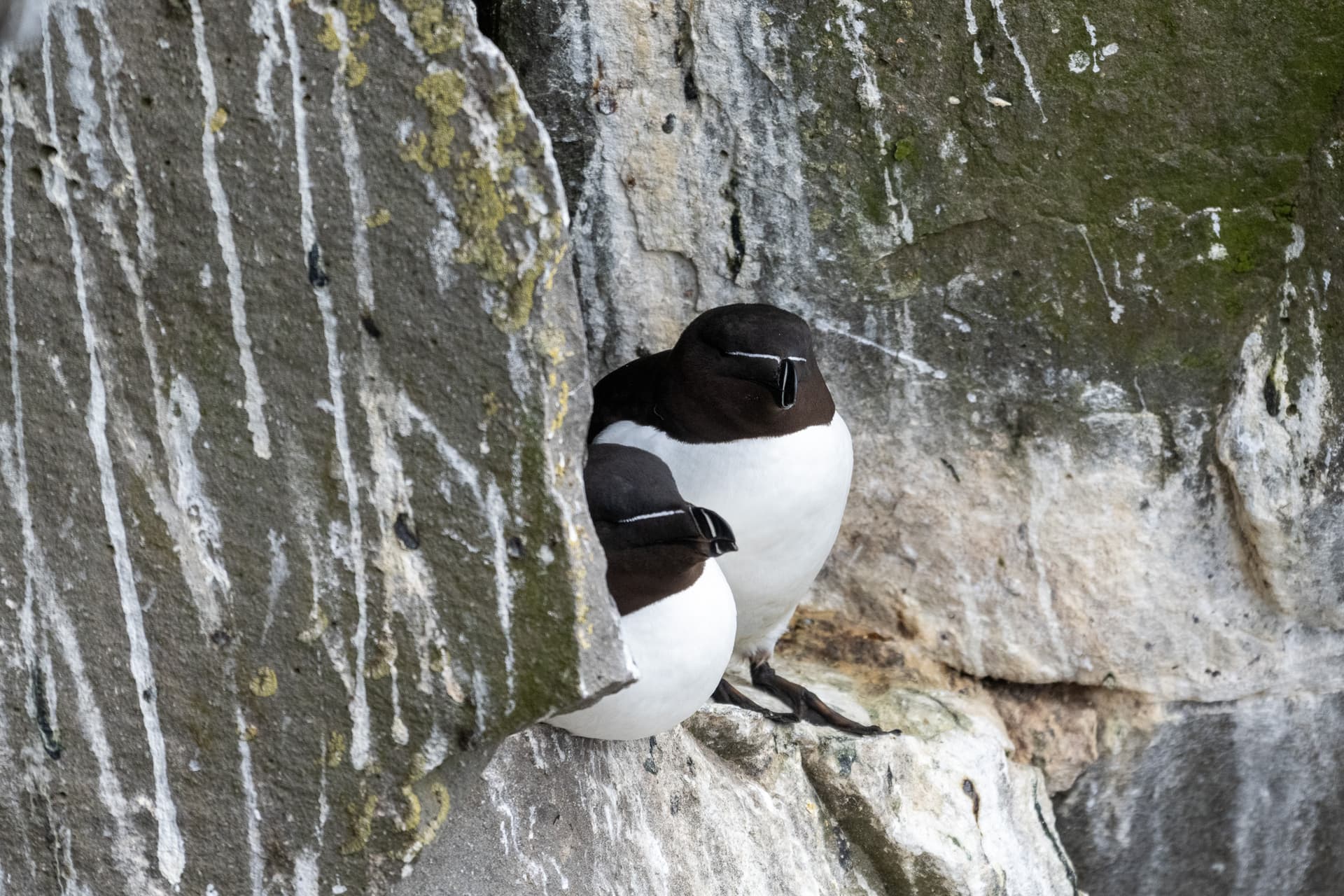 除了海鹦,这里还是刀嘴海雀(Razorbill,Alca torda)的栖息地,整块悬崖上全都是它们的排泄物,味道也和南极的企鹅栖息地有一拼……什么你说你不知道这是啥鸟?这个表情包你绝对见过……