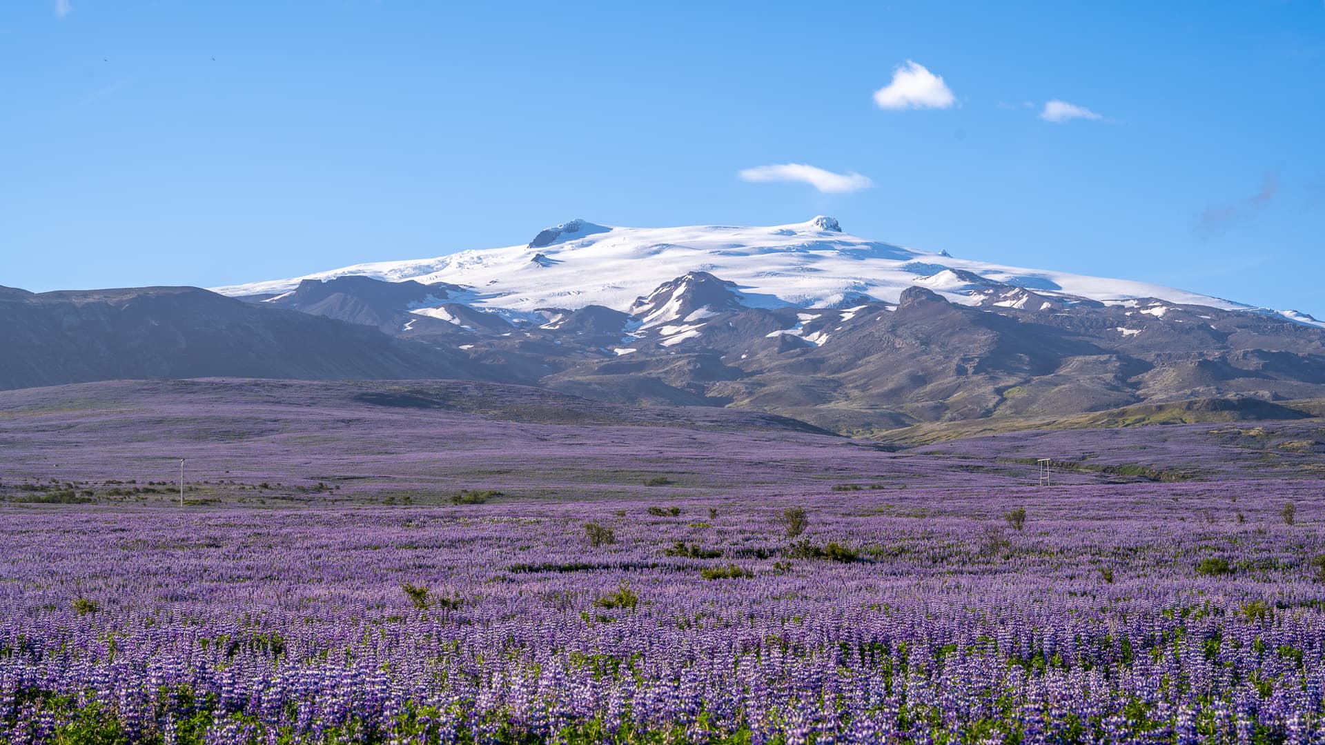 19点20从冰川湖区出来继续向西,一路上路过瓦特那冰原的多条形态各异的冰舌,草甸上鲁冰花海盛开,(不考虑消灭入侵物种)也确实是我见过的最灿烂的野生花海。