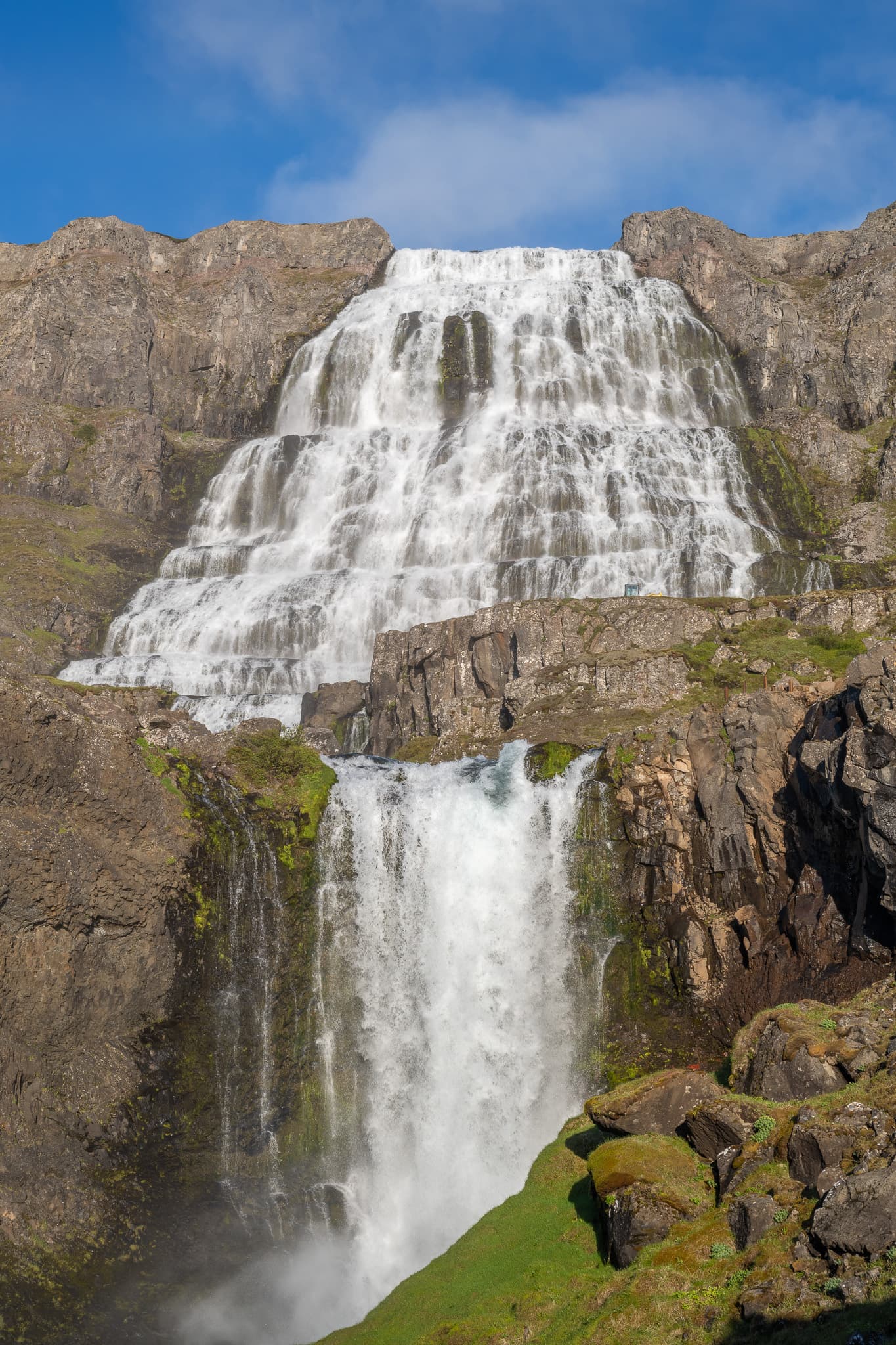 下一站是西峡湾地区的地标瀑布。由于瀑布面向西北,抵达时已经有些夕阳色彩的日光直射在瀑布上非常漂亮。在冰岛的众多瀑布中,这个瀑布虽然水量不算最大,但它有着标准的梯形的瀑布形态,还算挺有特点。