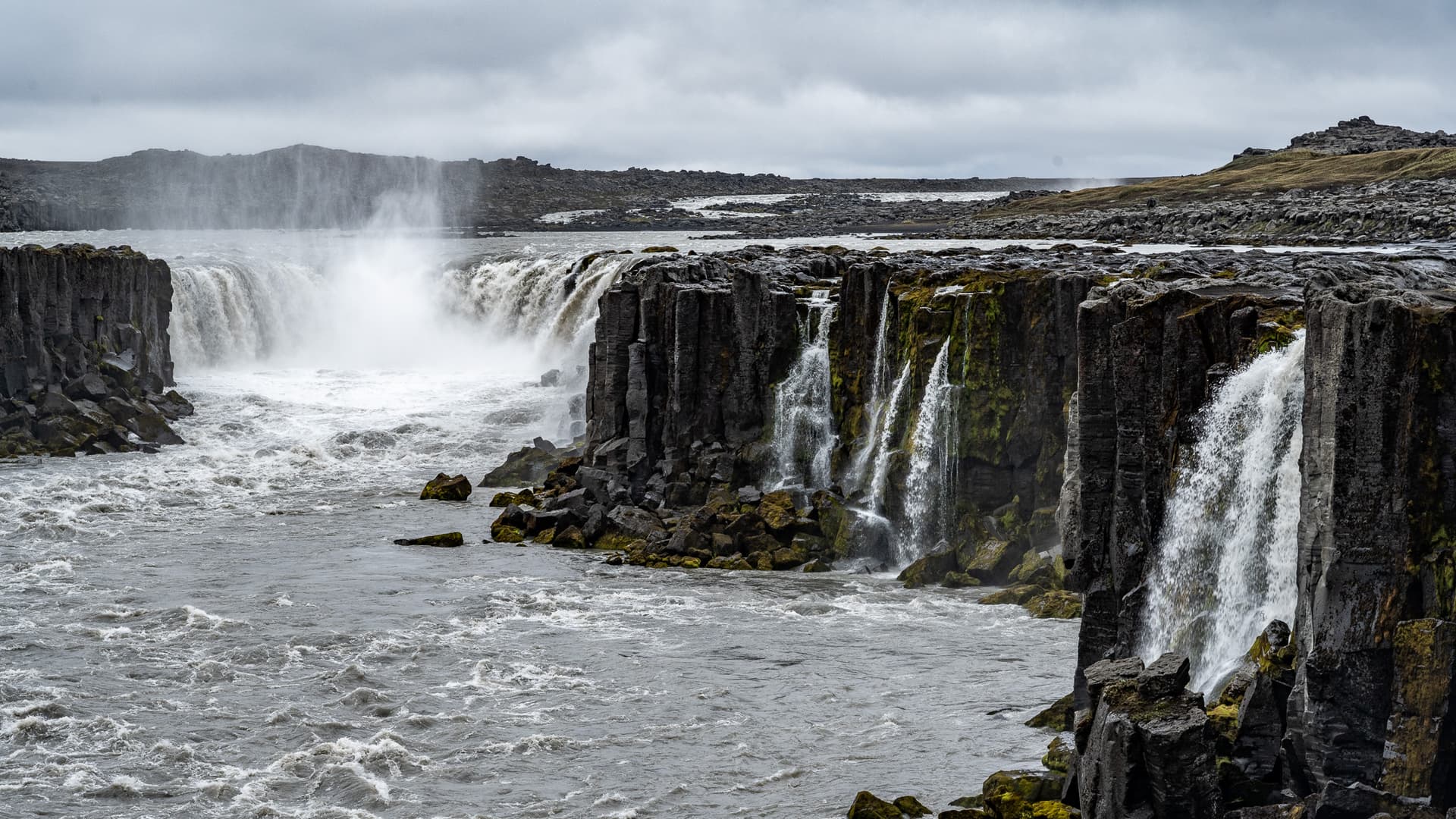 离Hverir不远就是全欧洲最大的瀑布Dettifoss,从西侧停车场走过去大概15分钟。瀑布很宽且水量非常大,肉眼观感和尼亚加拉差不多,大到我不得不把相机藏在衣服里。此外,这里的瀑布时从火山岩区域滚滚流下,柱状玄武岩与黑色的火山石,让这个瀑布显得更加魔幻。据说瀑布东侧观景点更好但路况非常烂,泥潭越野dalao们欢迎体验。