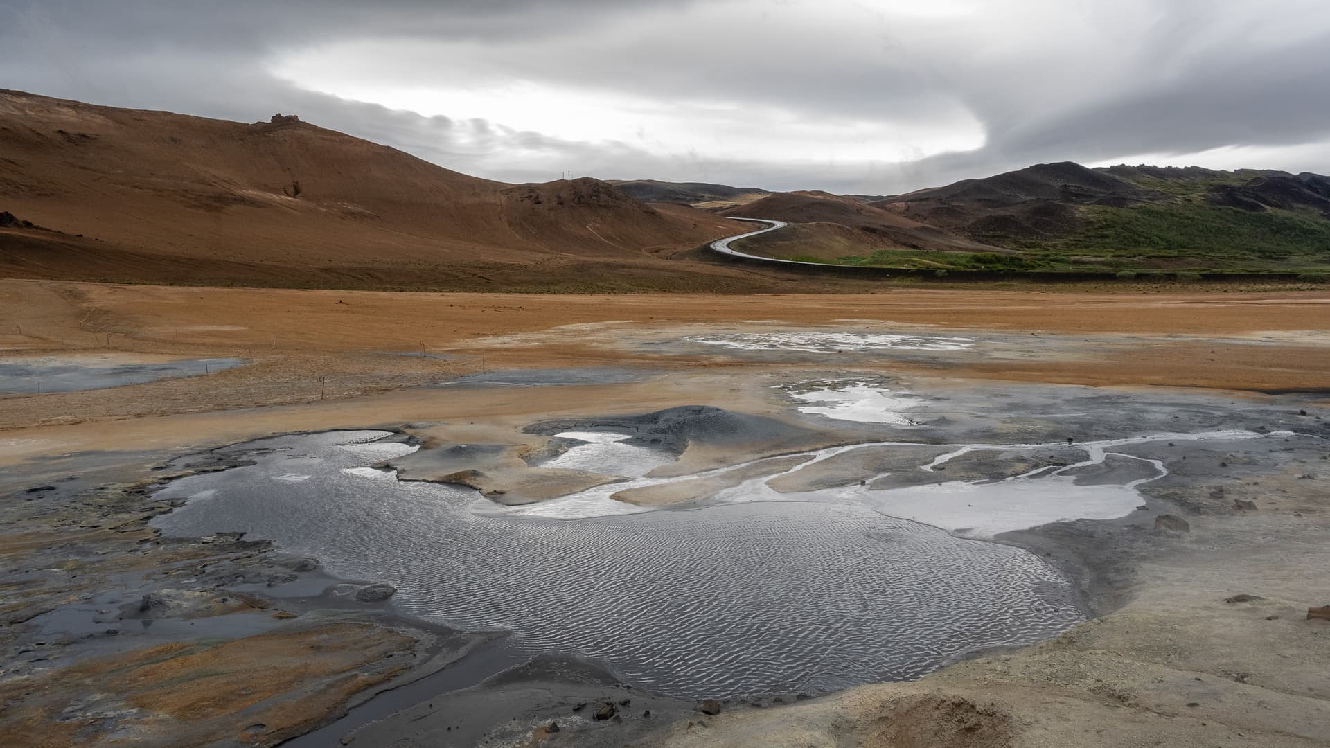 众神瀑布前往Dettifoss的途中,会经过米湖周边的地热区域Hverir。作为一个湖,米湖实在是乏善可陈,而周边的地热与火山景观对于刷过N次黄石和夏威夷的美国人民来说也不是什么稀奇的东西。不过比起黄石和夏威夷,这里的地貌确实荒凉和魔幻得多。