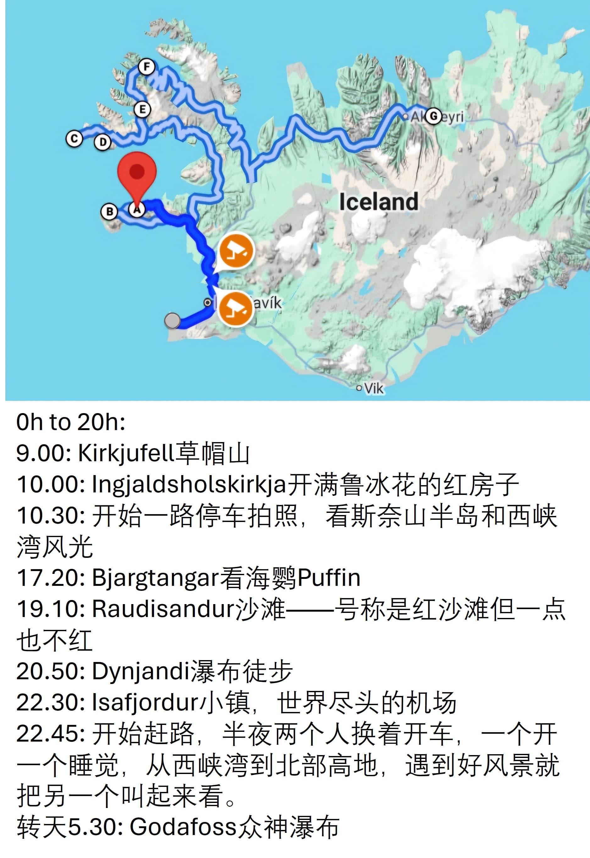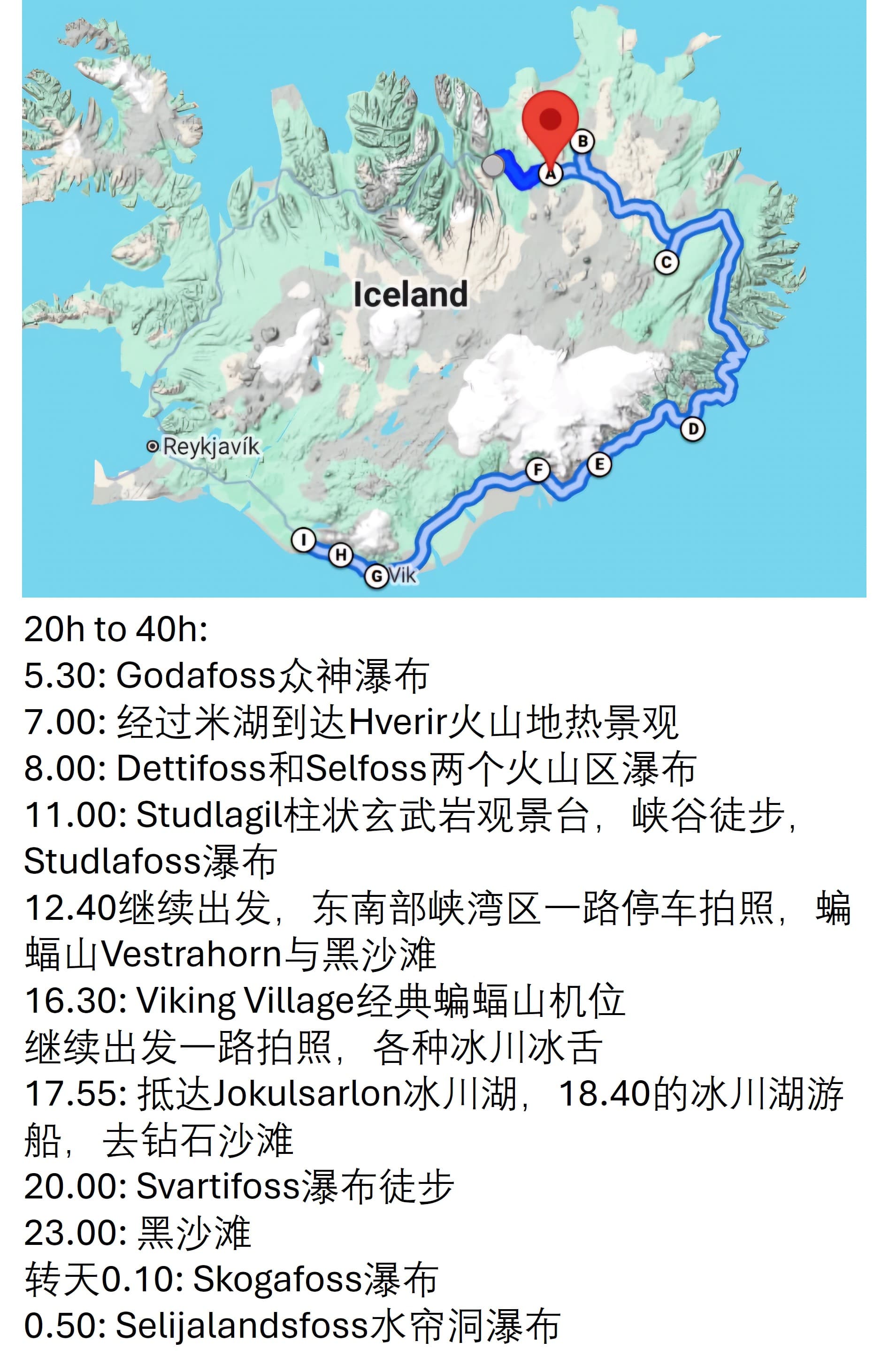 于是经过精密的计算和规划,便有了如下的48小时冰岛环岛行程: