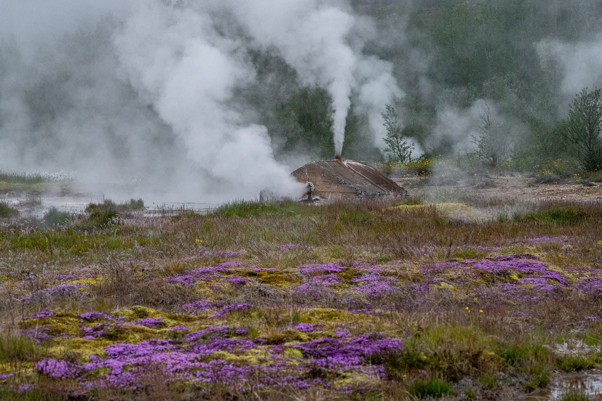 终于抵达了本次的最后一个景点也是黄金圈内唯一一站Strokkur Geyser间歇泉。连着两天赶路,快开到时我们几乎快到了通过说梦话保持清醒的开车阶段,路途要是再长五分钟估计我们就在路上睡一会了。本来这个景点我觉得也是可去可不去毕竟这间歇泉再好能有黄石老忠实NB?但这里的体验确实和黄石有区别。一是间歇泉周围的温暖气温催生的满地野花,二是这里的间歇泉喷发方式和黄石其实不太一样——这边每次喷发大概只持续一两秒,比起喷发可能更好的名字是炸