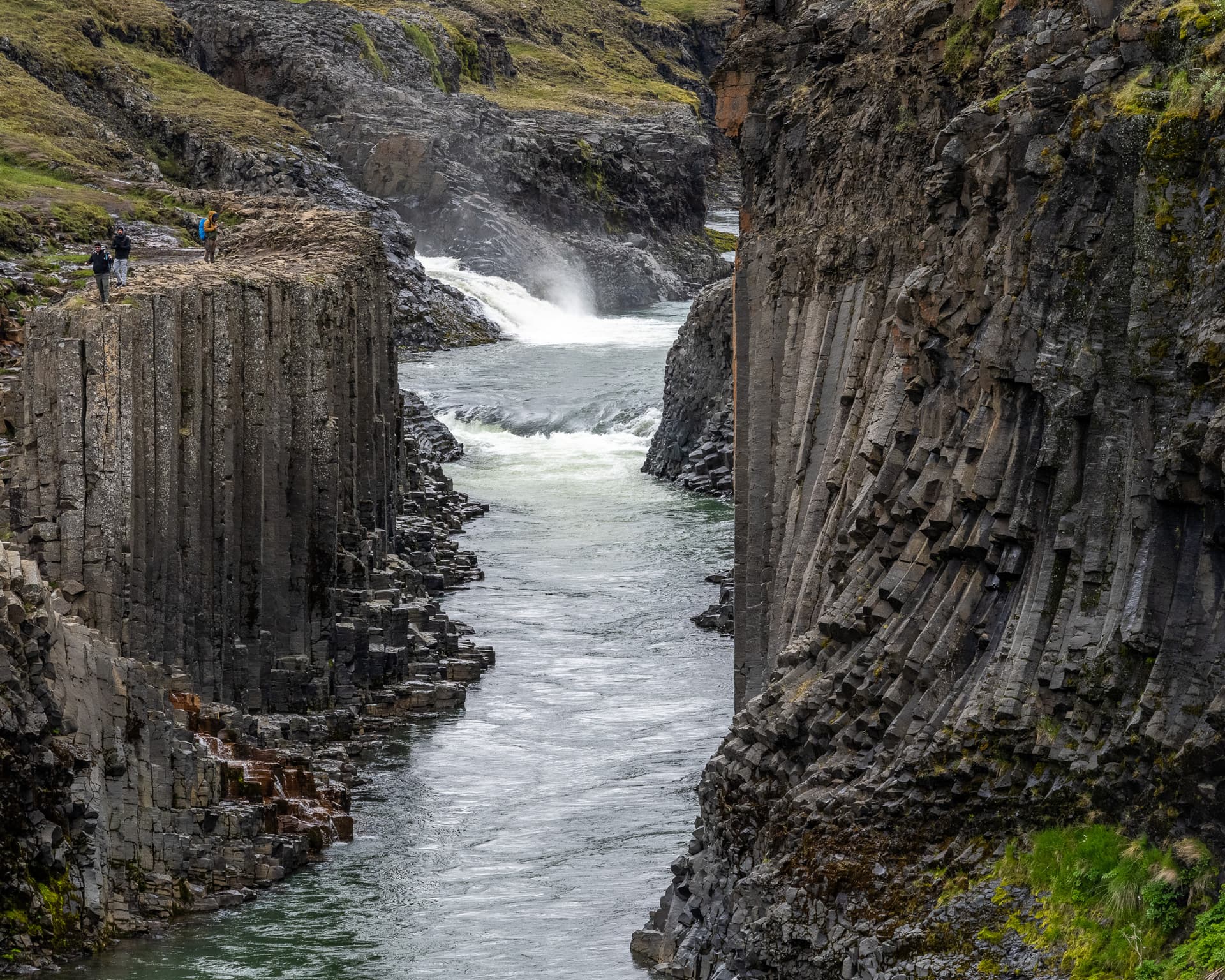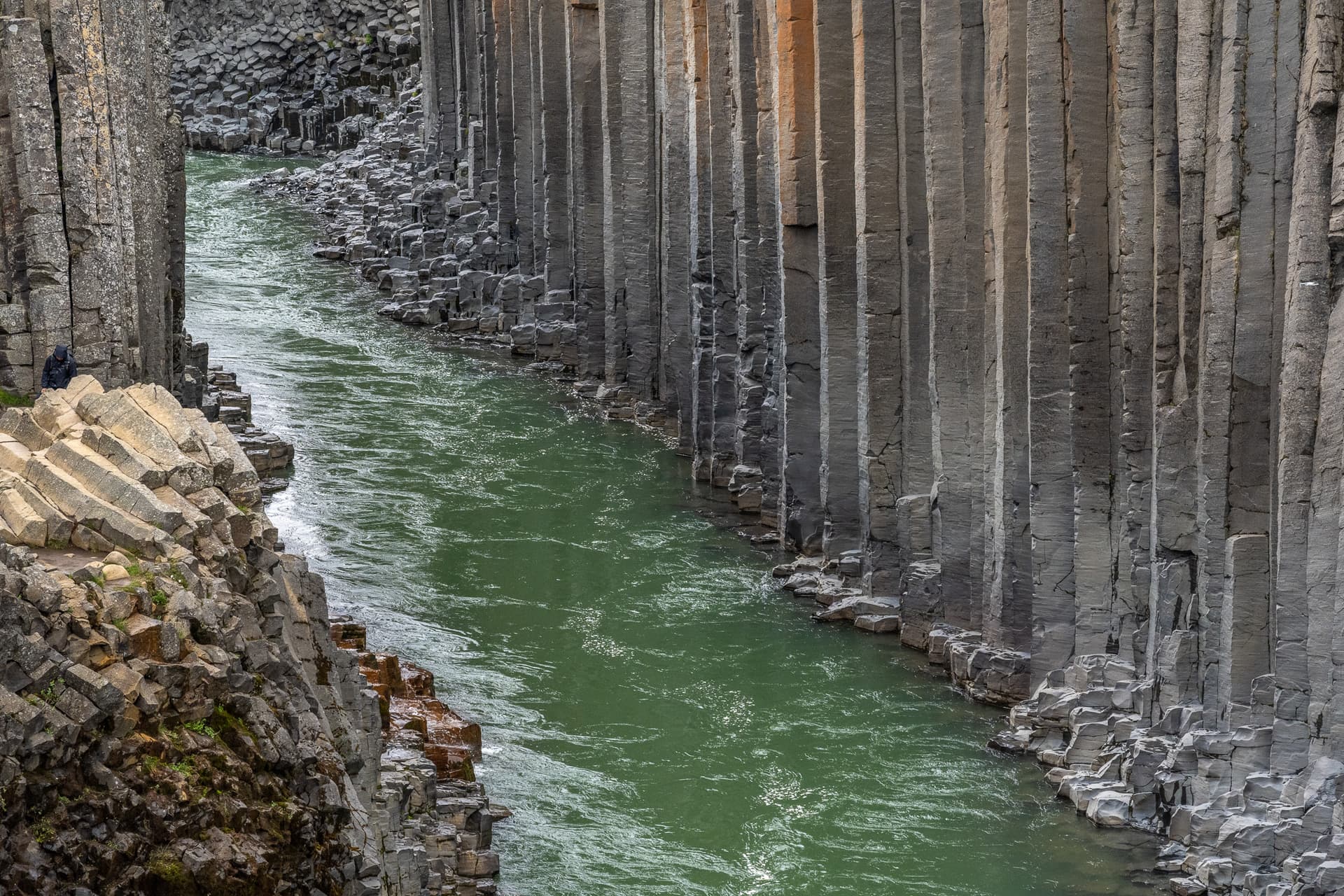从北部瀑布区出来我们赶往东部的柱状玄武岩峡谷Studlagil Canyon。峡谷有北侧和南侧两个游览区域,北侧是一个观景台,需要爬大概10层楼的高度,比起南侧的1 mile步道已经很短了。相对来说风景比较乏善可陈,只适合真的不想走路徒步的人。而南侧的徒步则是Studlagil Canyon的精髓,先经过独特的柱状玄武岩瀑布Studlafoss。