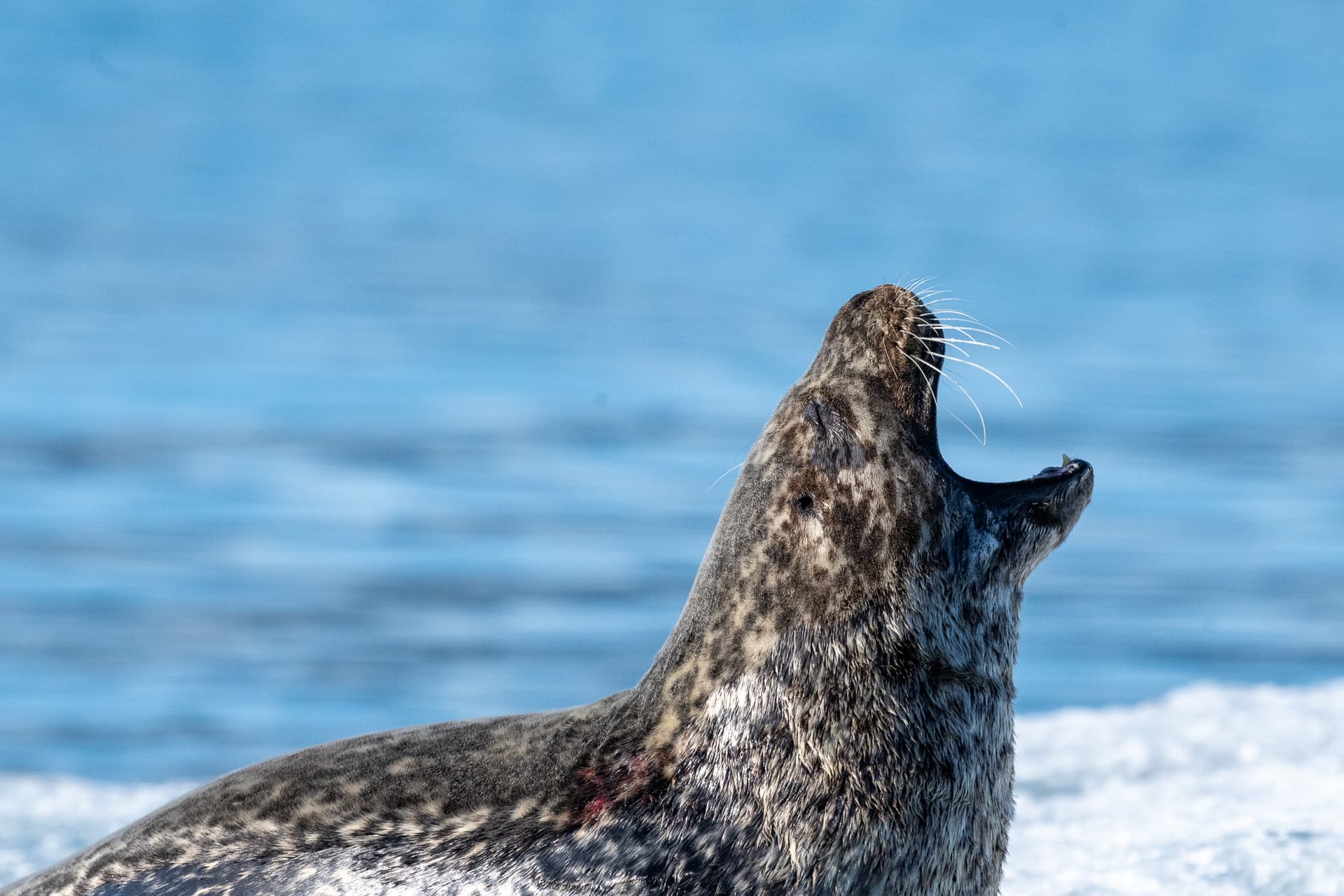 18.30准时回到游客中心上船。曾经在阿拉斯加坐过的全部冰川游船无一例外都要开很远,而杰古沙龙的这个全程半小时水陆两栖船可以说是效率很高了——除了与时间不匹配的价格也确实有点抽象。由于冰原面积巨大,这里的浮冰也从不缺乏梦幻的蓝冰,还有海豹从海里来到冰川湖,懒洋洋地在浮冰上打呵欠。