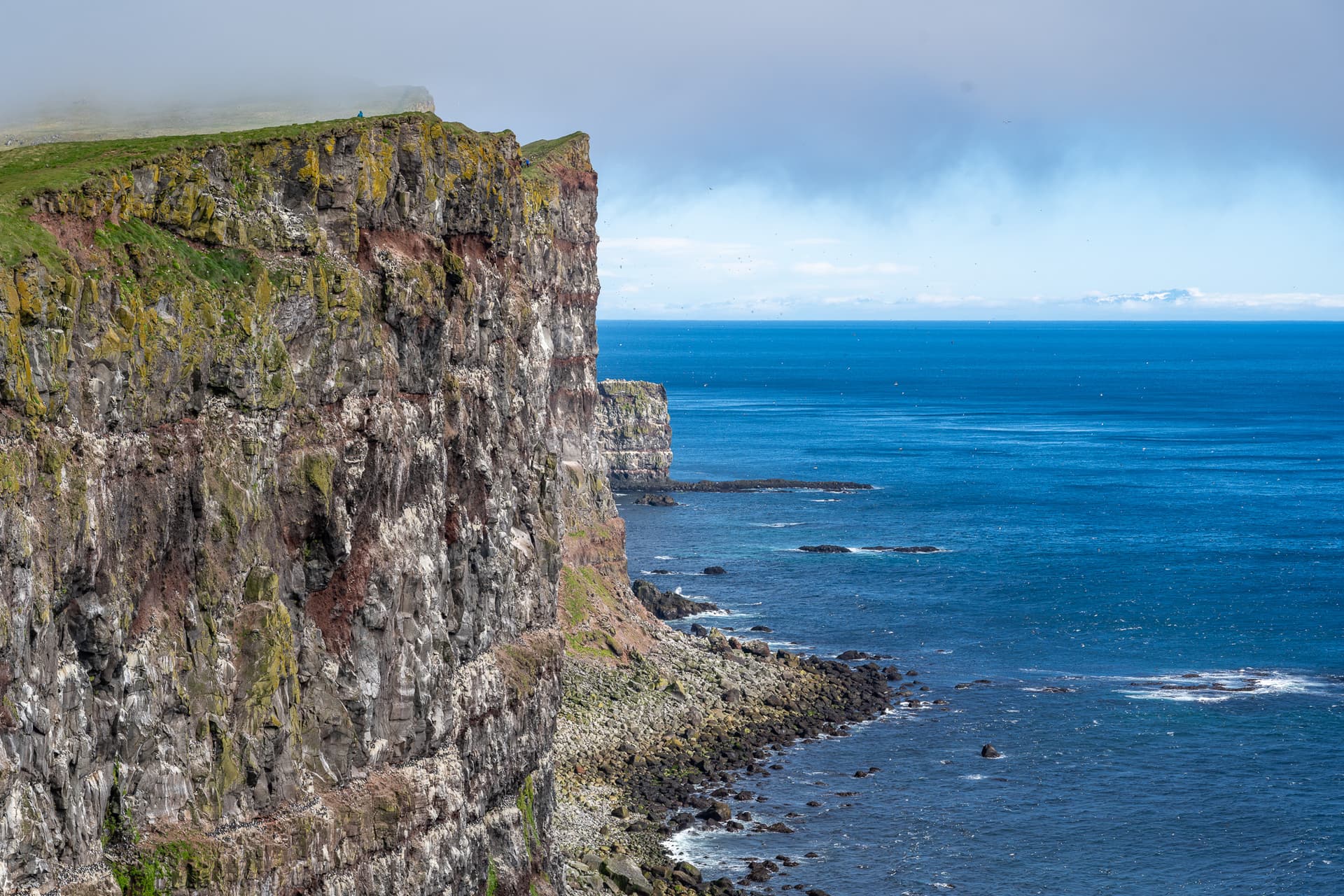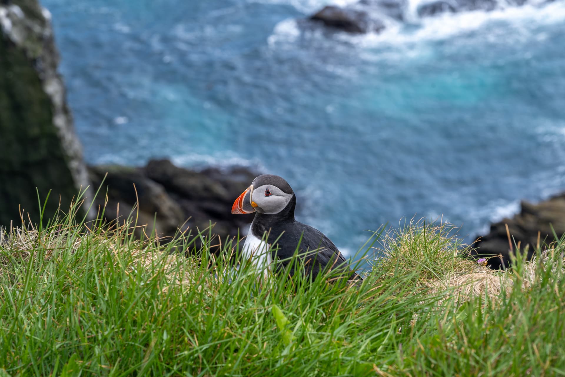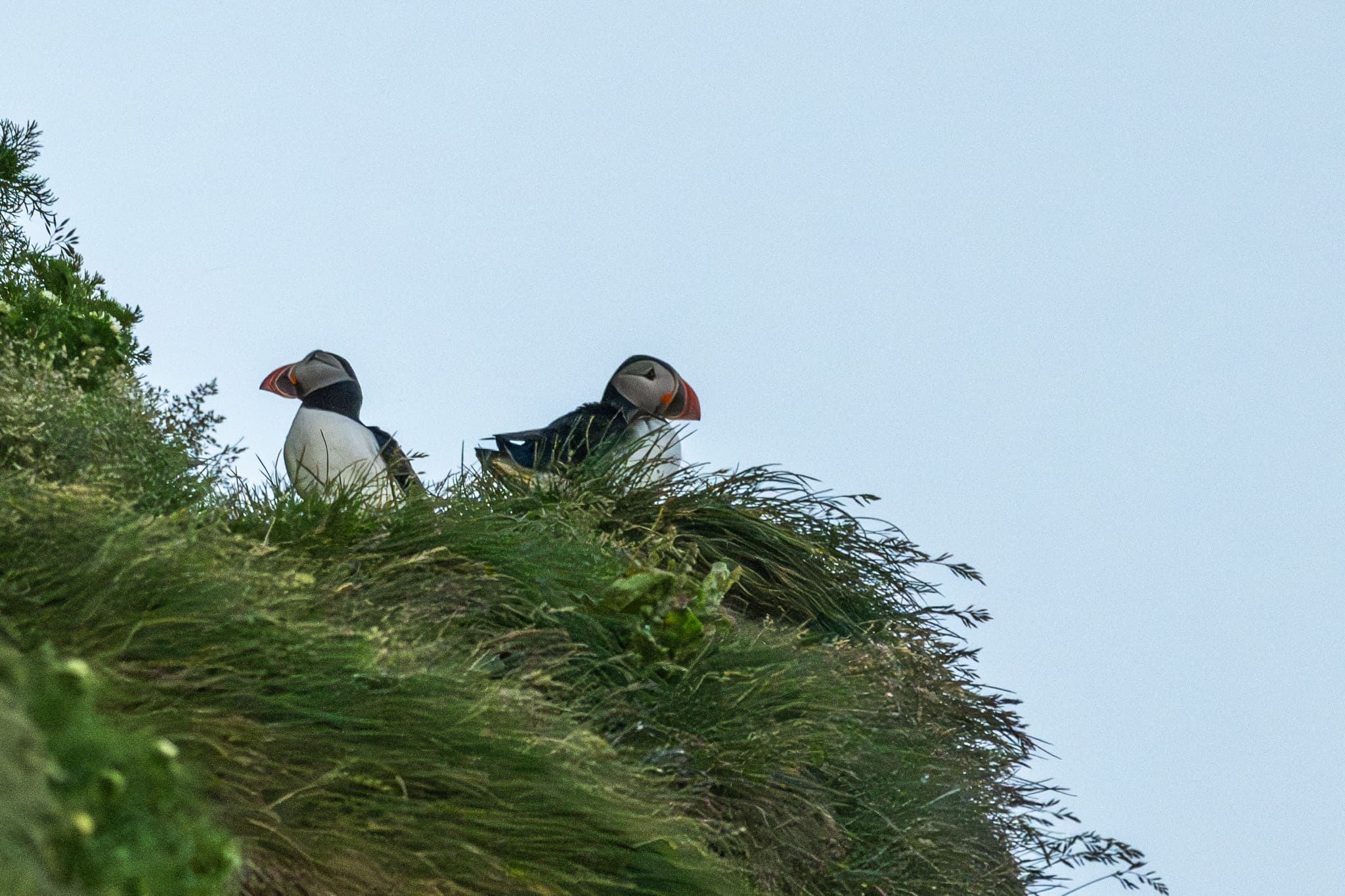在下午五点多我们终于抵达了西峡湾的第一站也是最远的一站Bjargtangar——这里的海岸悬崖是大西洋海鹦(Atlantic Puffin,Fratercula arctica)的栖息地。这些鸟不仅憨态可掬十分上镜(Happy Feet 2钦定的“北极会飞企鹅”),而且似乎是完全不怕人的样子——虽然仍旧建议和它们保持距离。