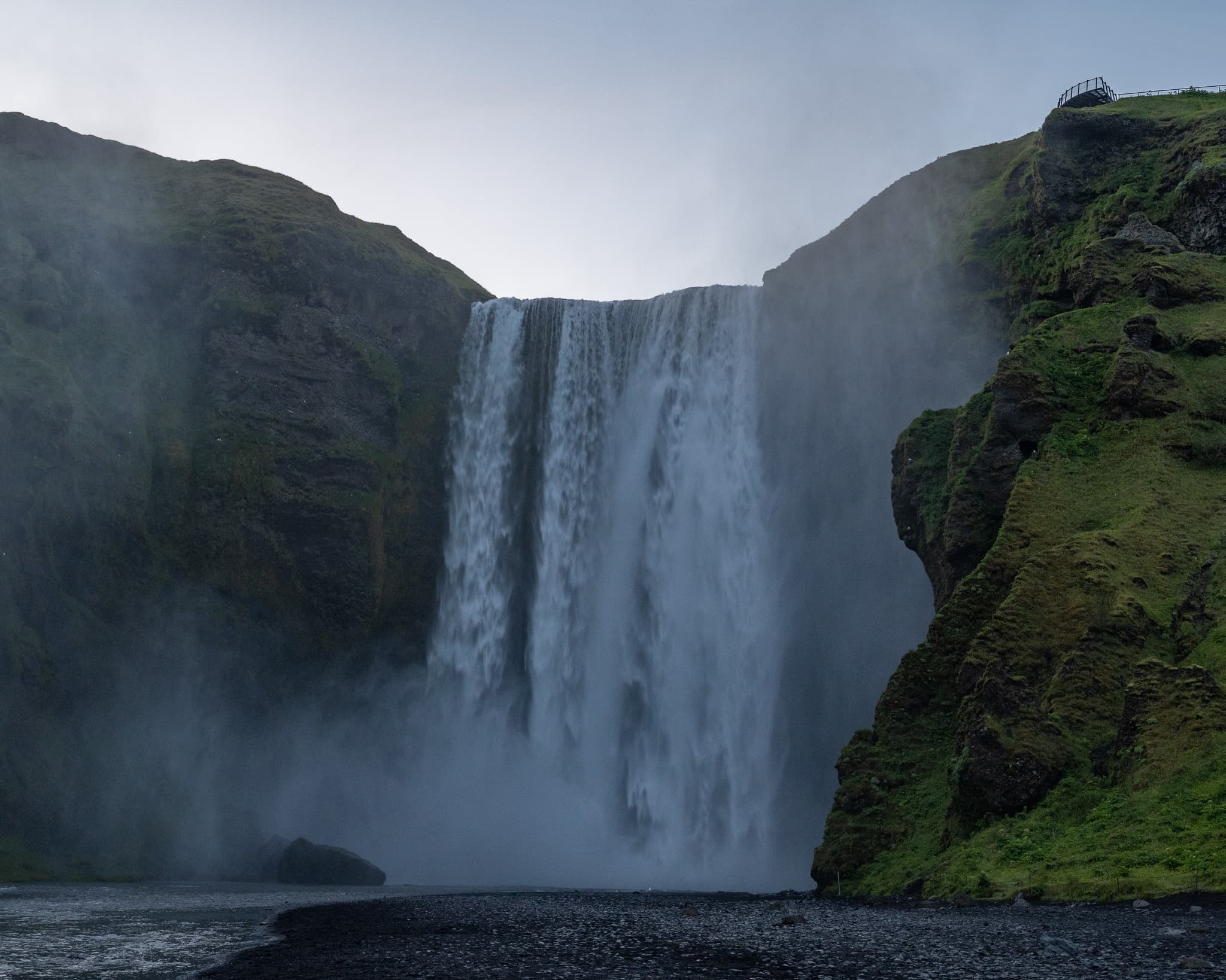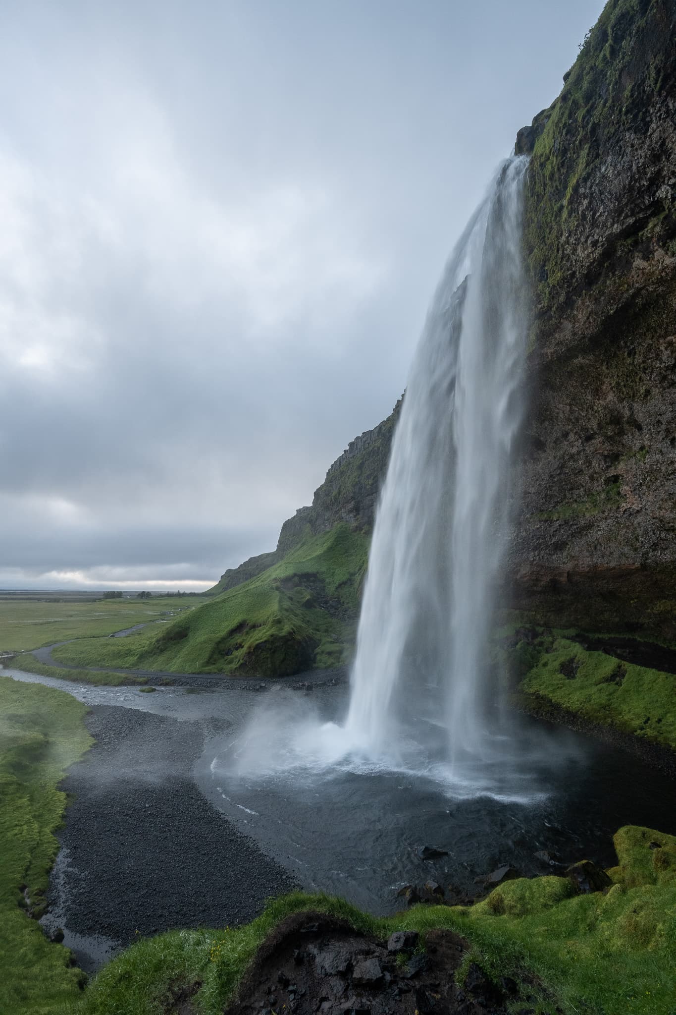 离Skogafoss不远处又有一个很上镜的瀑布Selijalandfoss,这里是各种商业“风光摄影”比如托马斯看世界一类的货色最喜欢的地方之一,我向来对他们嗤之以鼻,但这个瀑布的体验确实是很独特的。步道修到了瀑布的后面仿佛水帘洞,凌晨一个人也没有也确实非常适合各个角度拍照——除了明明这么亮,步道上开的灯实在是有些annoying。
