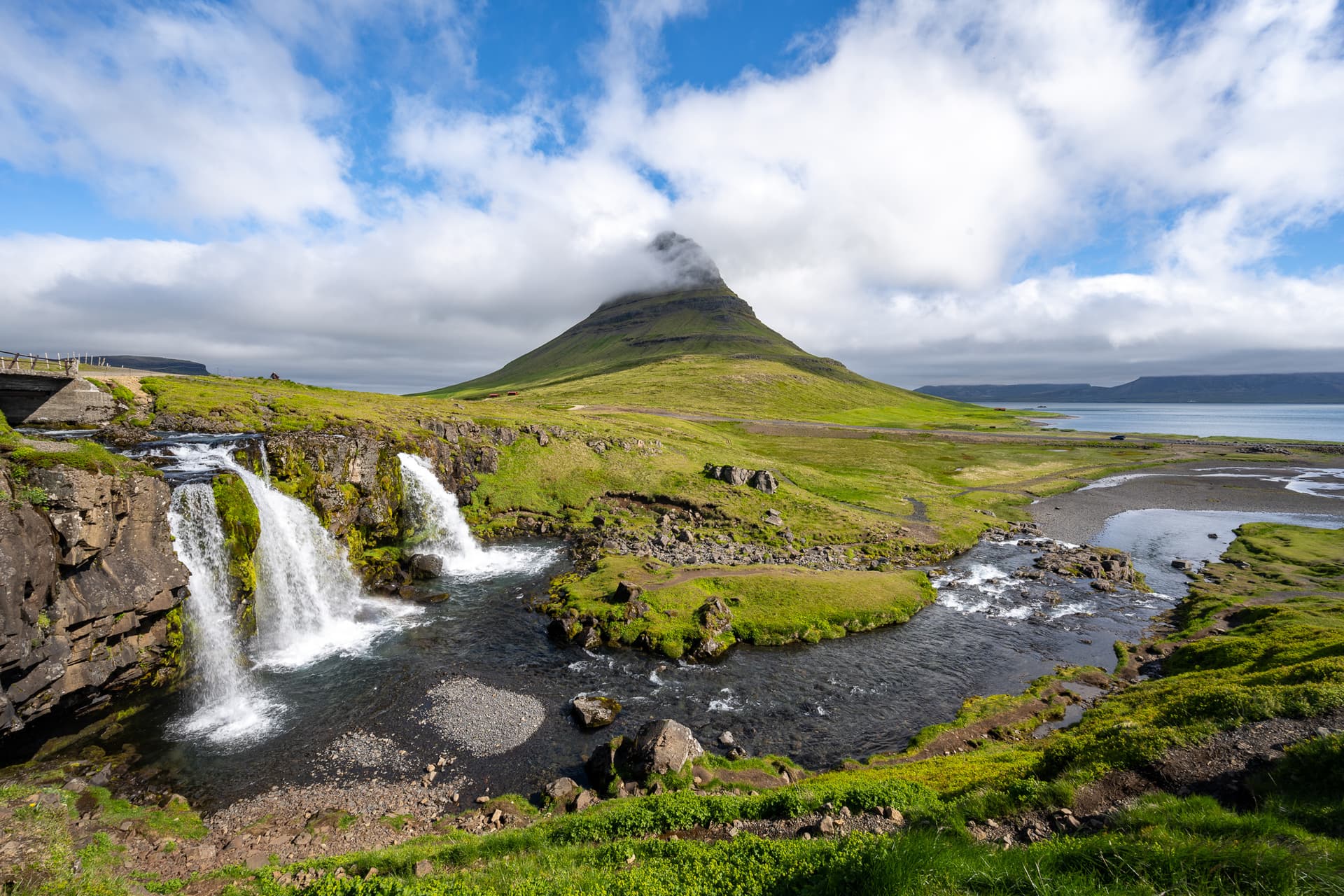 来冰岛第一站之著名机位草帽山Kirkjufell,天气不错可惜山顶一直阴云笼罩。山形确实非常上镜出片,但是对于不摄影的普通游客来说,在路边看看拍拍也够了,停车场简直是抢钱。私以为这里还是冬天有雪有极光时好看一点点。