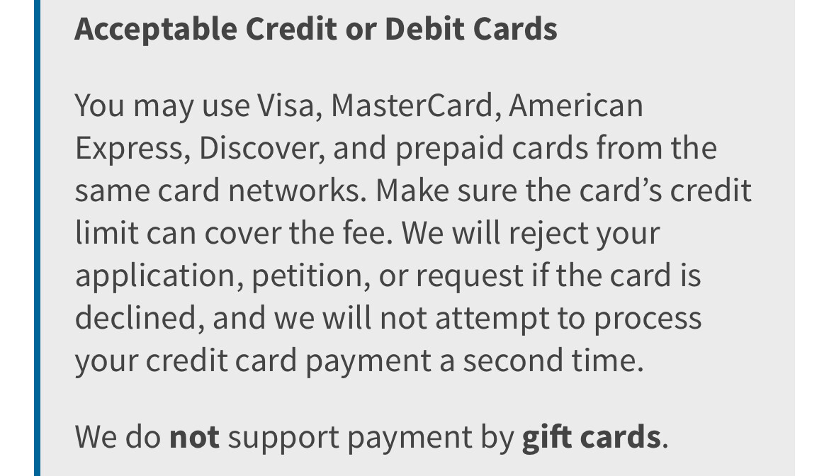 (谢谢大家建议用支票。申请是在网上递交的,信用卡付款立刻处理,不用担心被拒付。)